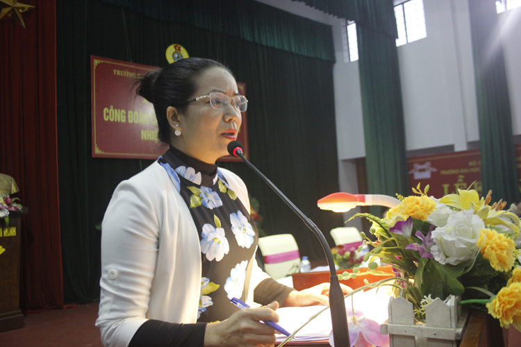 Đ/c Lê Thu Sao- Chủ tịch Công đoàn Nhà trường phát biểu tại Đại hội bộ phận phát biểu tại Đại hội