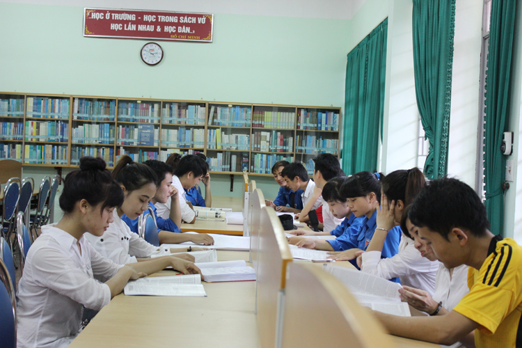 Sinh viên học nhóm trên phòng đọc thư viện