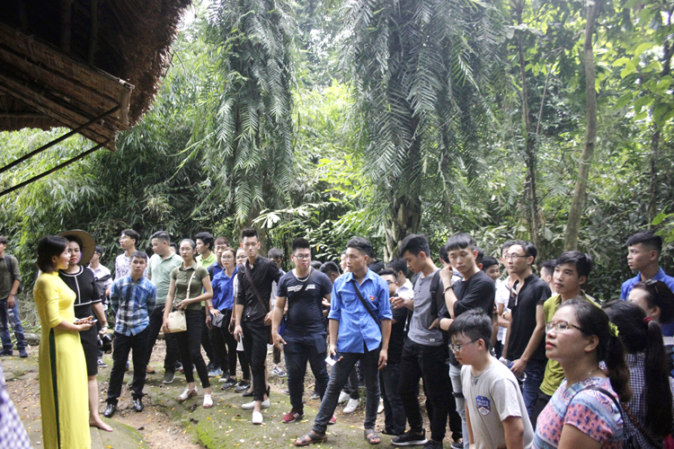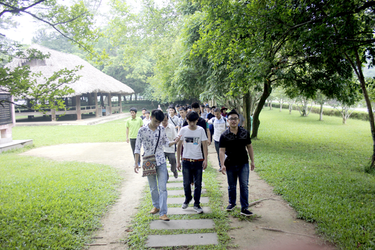 Tiếp đến, đoàn đi thăm khu di tích Khuôn Tát, nơi chủ tịch Hồ Chí Minh ở và làm việc cùng các đồng chí Trường Chinh, Phạm Văn Đồng, Võ Nguyên Giáp…, thăm di tích Tỉn Keo nằm trên đồi Tỉn Keo xanh ngát dưới chân đèo De. Đây là nơi chủ tịch Hồ Chí Minh đã chủ trì cuộc họp Bộ Chính trị thông qua kế hoạch tác chiến để làm nên chiến thắng Điện Biên Phủ “lừng lẫy năm châu, chấn động địa cầu”. Tại di tích Tỉn Keo, các tân sinh viên được nghe và cảm nhận phần nào về cuộc chiến của cha ông trong nhà trưng bày Bảo tàng ATK Định Hoá. Theo chân hướng dẫn viên, nghe giới thiệu về từng gian trưng bày, mỗi thành viên trong đoàn như thấy lại hào khí cách mạng, hào khí Việt Bắc năm nào.