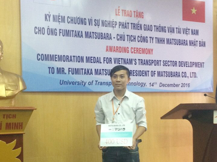 Ngày 14/12/2016 vừa qua, tại lễ trao tặng kỷ niệm chương Vì sự nghiệp phát triển giao thông vận tải Việt Nam cho ông Fumitaka Matsubara – chủ tịch Công ty TNHH Matsubara – Nhật Bản diễn ra tại Trường Đại học Công nghệ GTVT có 5 sinh viên được nhận học bổng của Quỹ học bổng Matsubara, trong đó có một sinh viên của cơ sở đào tạo Thái Nguyên, đó là em Phạm Tiến Đạt, sinh viên lớp 65DCOT31. Sau buổi lễ, chúng tôi đã có cuộc gặp gỡ với chàng “kỹ sư cơ khí” tương lai này.