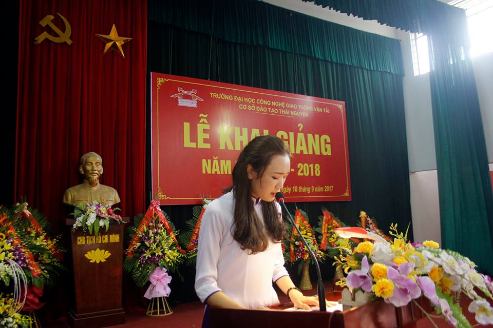 Thay mặt cho toàn thể sinh viên trong Cơ sở Đào tạo Thái Nguyên, sinh viên Đoàn Thị Ngọc Ánh khóa 68 đã phát biểu suy nghĩ của mình trong buổi lễ khai giảng năm học 2016-2017.