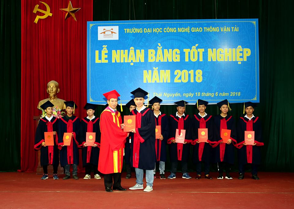 Sáng ngày 18 tháng 6 năm 2018 tại Cơ sở đào tạo Thái Nguyên - Trường Đại học Công nghệ Giao thông Vận tải tổ chức lễ nhận bằng tốt nghiệp và khen thưởng cuối khóa cho sinh viên khóa 64 hệ đại học chính quy ngành Công nghệ kỹ thuật giao thông.