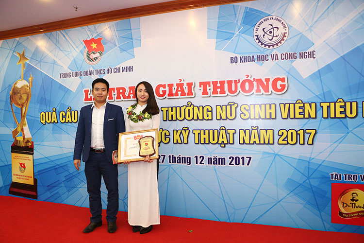 Sinh viên Khuất Thị Ngọc Ánh nhận Phần thưởng Nữ sinh viên tiêu biểu trong lĩnh vực kỹ thuật năm 2017 được trao tại Bộ Khoa học và Công nghệ