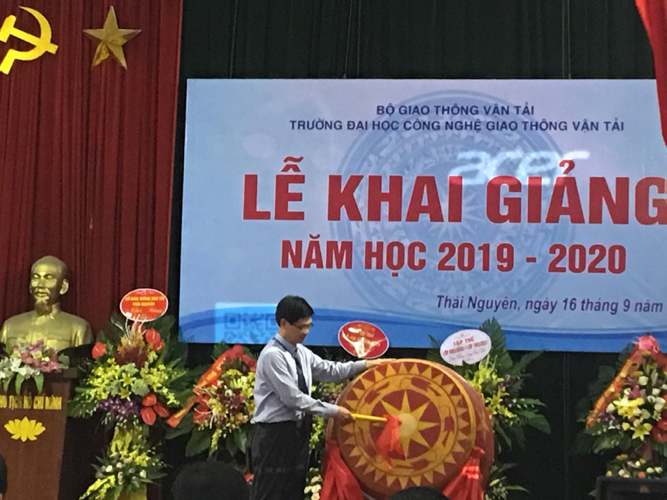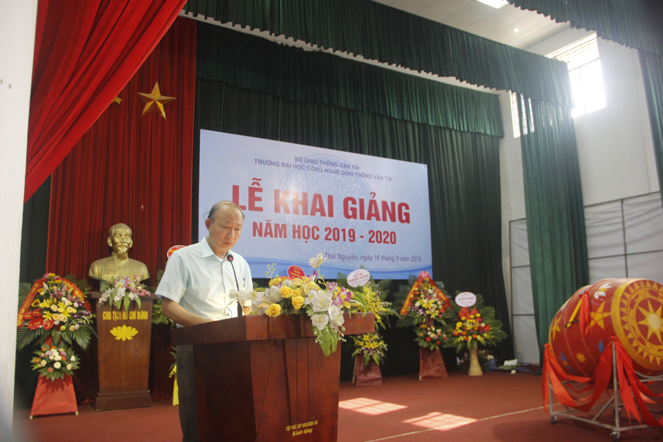 Chiều ngày 16/9/2019, hòa trong không khí của hơn 22 triệu học sinh, sinh viên trên cả nước đang nô nức, phấn khởi bước vào năm học mới, Trường Đại học Công nghệ GTVT long trọng tổ chức Lễ khai giảng năm học 2019-2020 tại Cơ sở đào tạo Thái Nguyên.