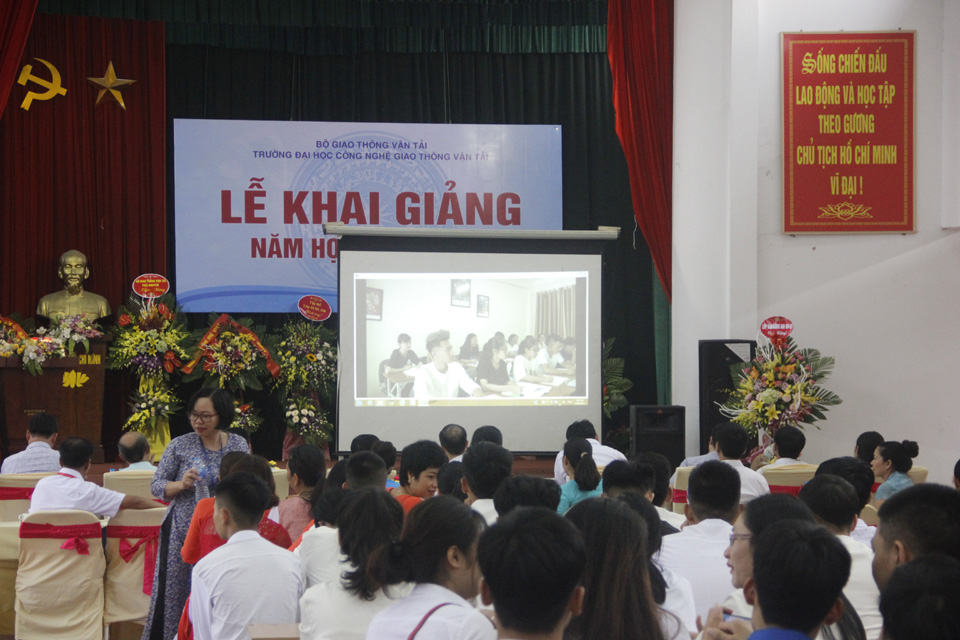 Tại buổi lễ, các vị đại biểu, các thầy cô giáo cùng toàn thể các em sinh viên đã được xem những hình ảnh giới về lịch sử truyền thống của Trường Đại học Công nghệ GTVT với bề dày 74 năm hình thành và phát triển, những thành tựu mà Nhà trường đã đạt được trong sự nghiệp giáo dục và đào tạo những năm qua.