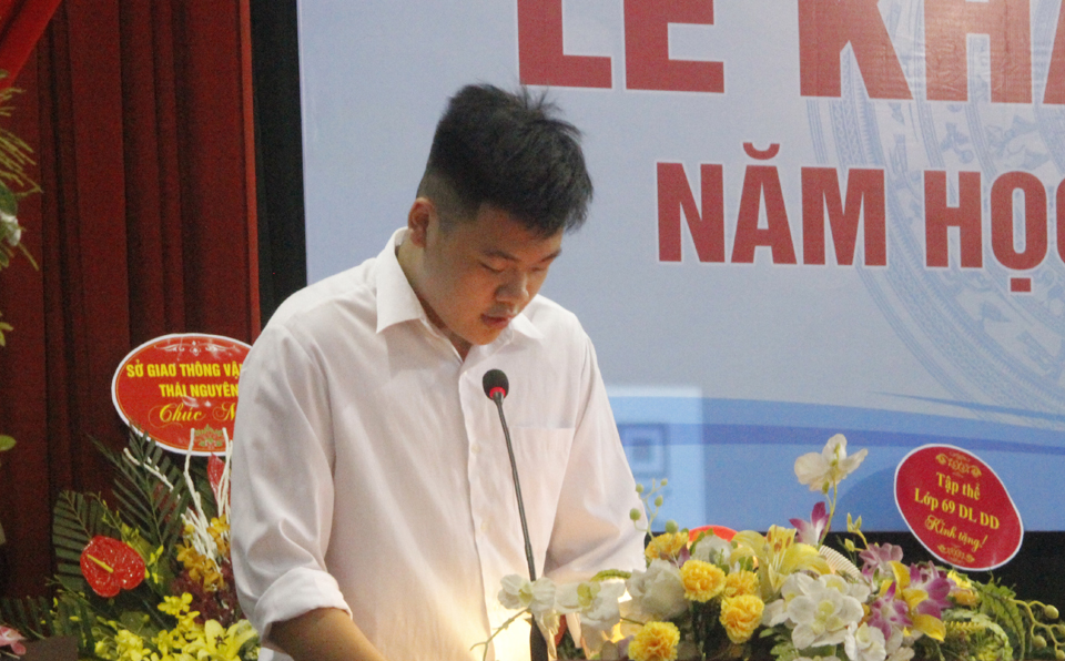 Sinh viên Phạm Minh Quang – 70DCOT31 đại diện các tân sinh viên K70 của Trường phát biểu cảm tưởng nhân dịp đầu năm học mới.