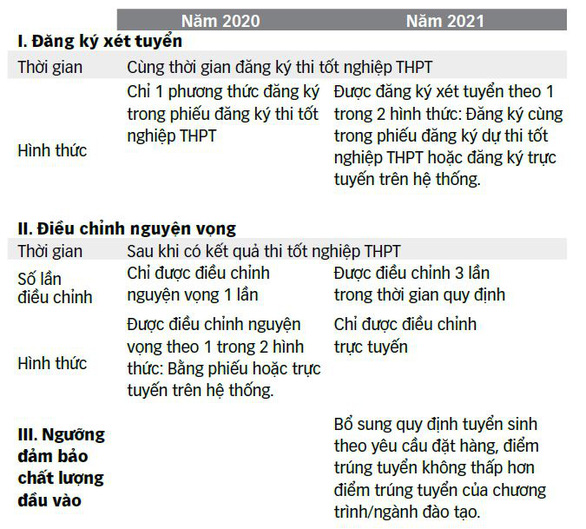 Một nội dung sửa đổi đáng chú ý của dự thảo quy chế tuyển sinh năm nay là hội đồng tuyển sinh của trường gửi giấy thông báo thí sinh trúng tuyển nhập học khi thí sinh đã đáp ứng đủ các điều kiện trúng tuyển và ghi rõ những thủ tục cần thiết đối với thí sinh khi nhập học. Trường chỉ được sử dụng bản chính giấy chứng nhận kết quả thi THPT làm căn cứ xác nhận nhập học (đối với thí sinh tham dự kỳ thi THPT của năm tuyển sinh).