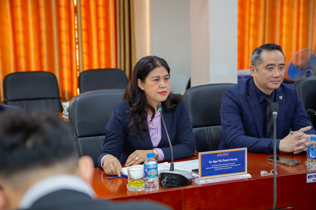 PGS.TS. Ngô Thị Thanh Hương – Phó Chủ tịch Hội đồng Trường, Trưởng phòng KHCN&HTQT phát biểu tại buổi làm việc