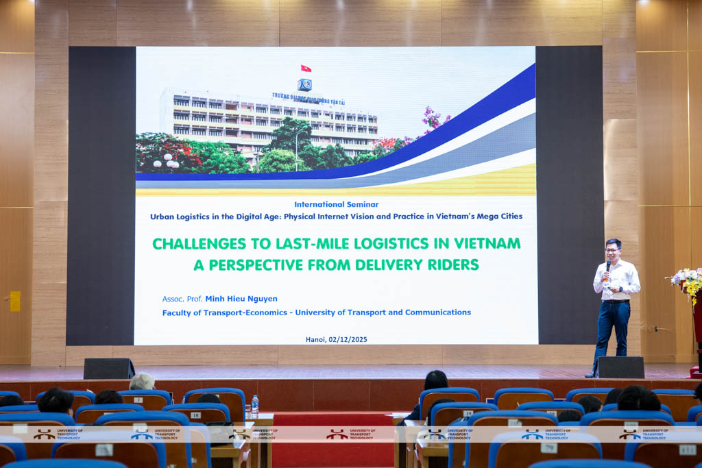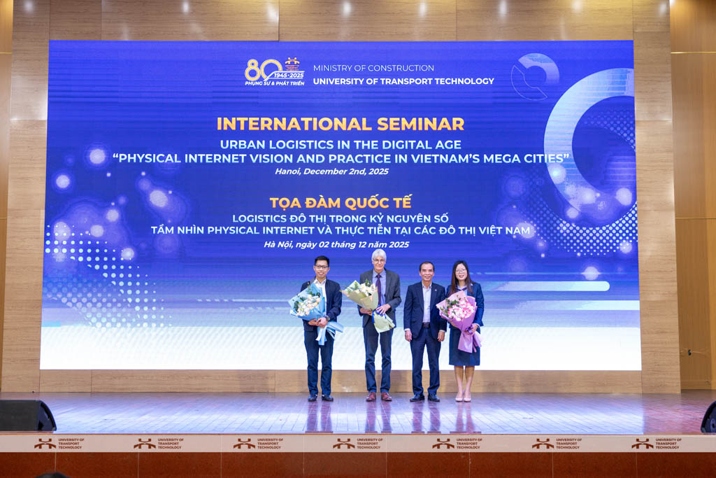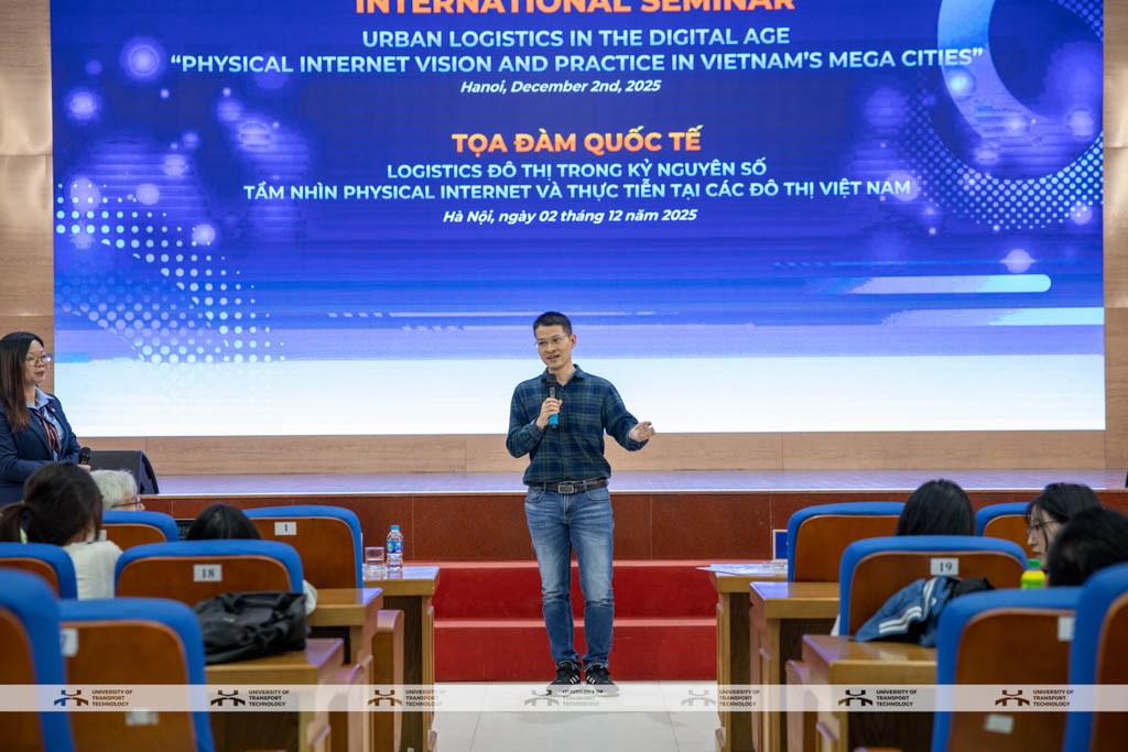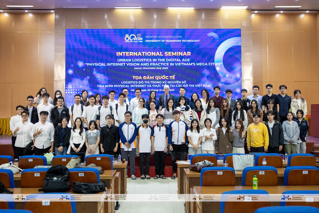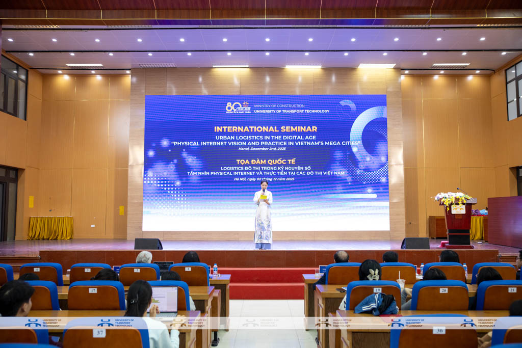 Ngày 02/12/2025, Trường Đại học Công nghệ GTVT (UTT) đã tổ chức Hội thảo Quốc tế Logistics Đô thị trong Kỷ nguyên số: Tầm nhìn Physical Internet và thực tiễn tại các đô thị Việt Nam, thu hút sự tham dự của nhiều chuyên gia trong nước và quốc tế, các nhà khoa học, giảng viên và đông đảo sinh viên. Sự kiện đánh dấu bước tiến quan trọng của UTT trong tăng cường hợp tác quốc tế và thúc đẩy các nghiên cứu ứng dụng trong lĩnh vực logistics và giao thông đô thị.