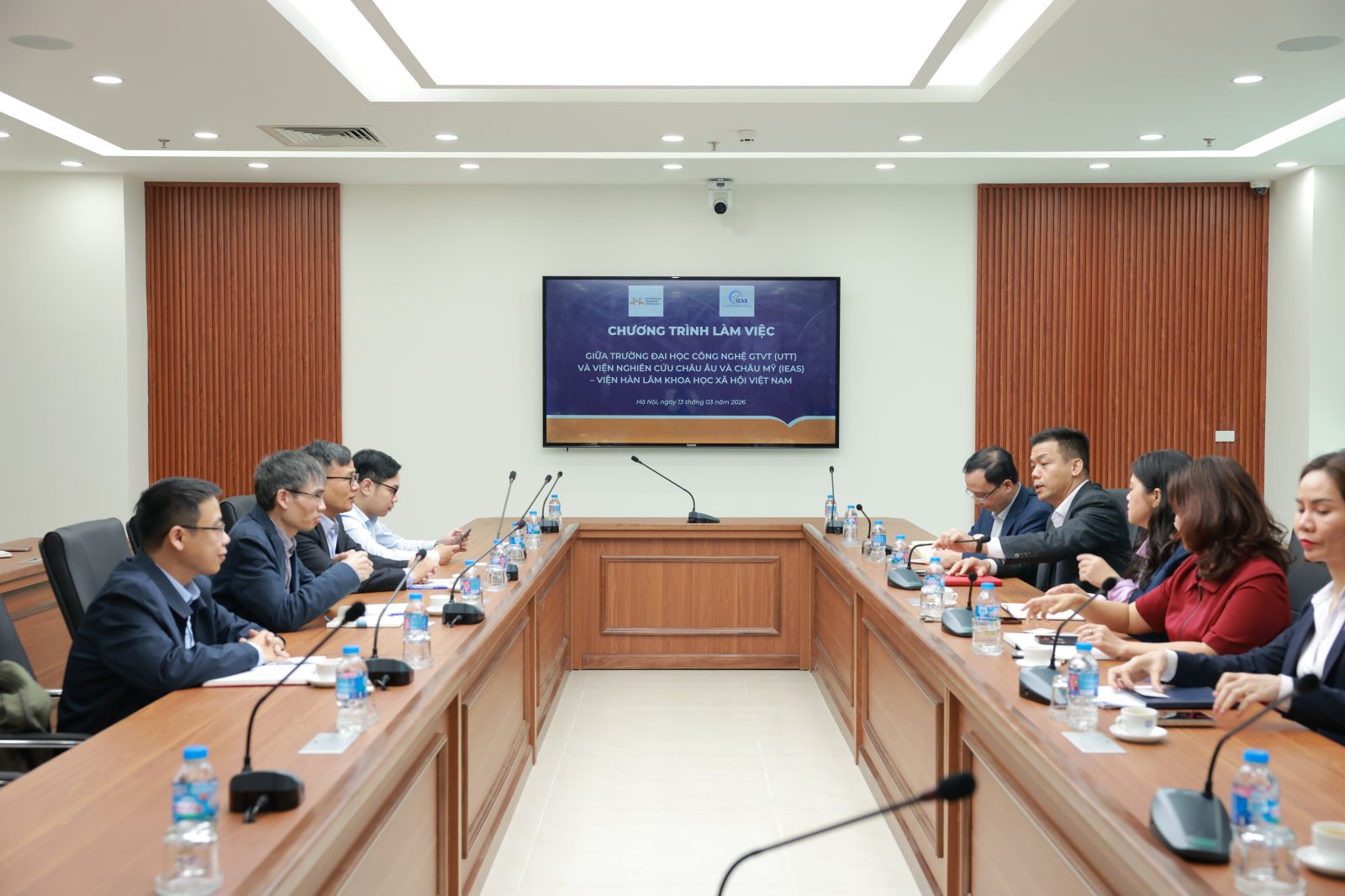 Ngày 13/3, Trường Đại học Công nghệ GTVT (UTT) đã có buổi tiếp và làm việc với đoàn công tác của Viện Nghiên cứu Châu Âu và Châu Mỹ (IEAS), thuộc Viện Hàn lâm Khoa học xã hội Việt Nam nhằm trao đổi, thúc đẩy các hoạt động hợp tác trong lĩnh vực nghiên cứu khoa học, phát triển khoa học - công nghệ và đào tạo.