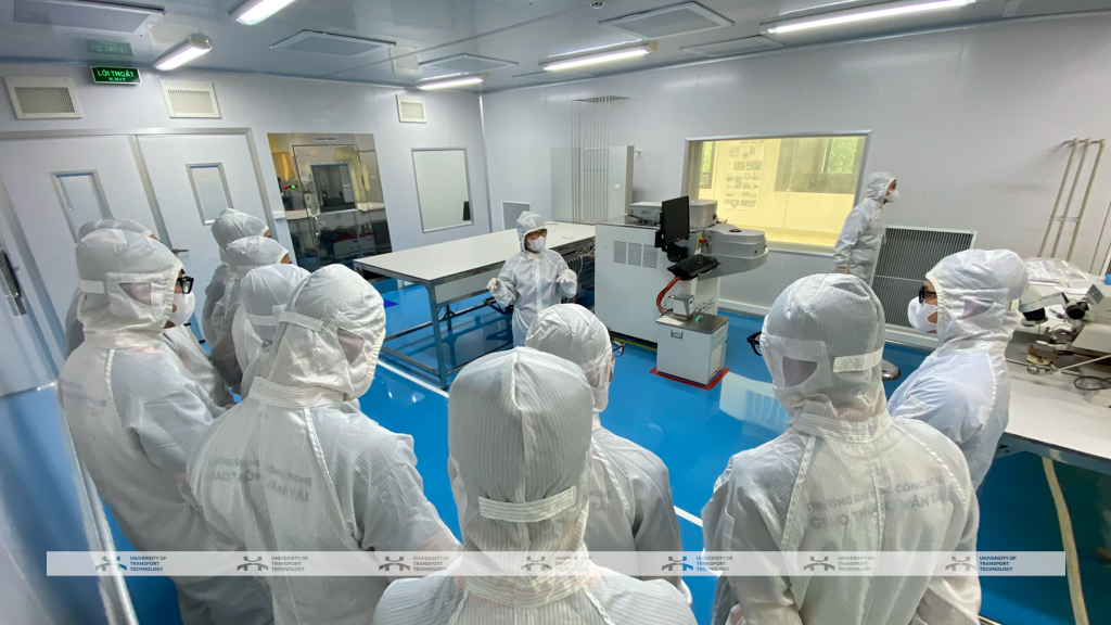 Trong khuôn khổ chương trình, đội ngũ giảng viên và sinh viên đã cùng tham gia các hoạt động học tập, nghiên cứu tại hệ thống phòng sạch - hạ tầng cốt lõi trong chế tạo vi mạch. Tại đây, các chuyên gia NACENTECH giới thiệu tổng thể về cấu trúc, nguyên lý vận hành và các tiêu chuẩn kỹ thuật của phòng sạch, đồng thời phân tích vai trò của các hệ thống kỹ thuật như điện, khí, nước, kiểm soát nhiệt độ và độ ẩm trong đảm bảo chất lượng sản phẩm bán dẫn.