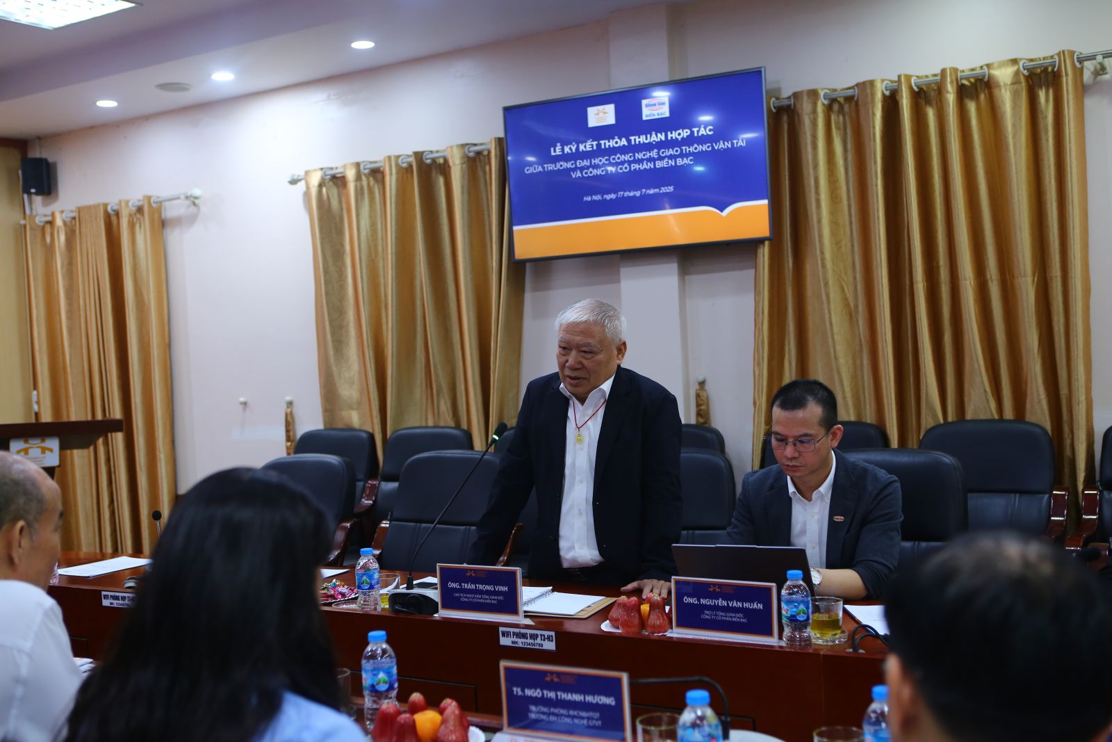 Phát biểu tại sự kiện, TS. Trần Hà Thanh - Phó Hiệu trưởng Nhà trường nhấn mạnh, UTT hiện là một trong 13 cơ sở giáo dục đại học được Bộ Giáo dục và Đào tạo lựa chọn dẫn dắt các trung tâm đào tạo xuất sắc và tài năng, tập trung vào lĩnh vực công nghệ giao thông và hạ tầng tiên tiến, thông minh. Với hệ thống cơ sở vật chất hiện đại, đồng bộ, Nhà trường đang tiếp tục mở rộng không gian nghiên cứu và đổi mới sáng tạo tại các cơ sở đào tạo. Đồng thời, UTT kiên định với định hướng "đi tắt-đón đầu" các xu thế công nghệ, tích cực ứng dụng thành tựu khoa học vào giảng dạy - nghiên cứu, tạo nền tảng thuận lợi cho hợp tác toàn diện, thực chất với các doanh nghiệp công nghệ hàng đầu như Biển Bạc.