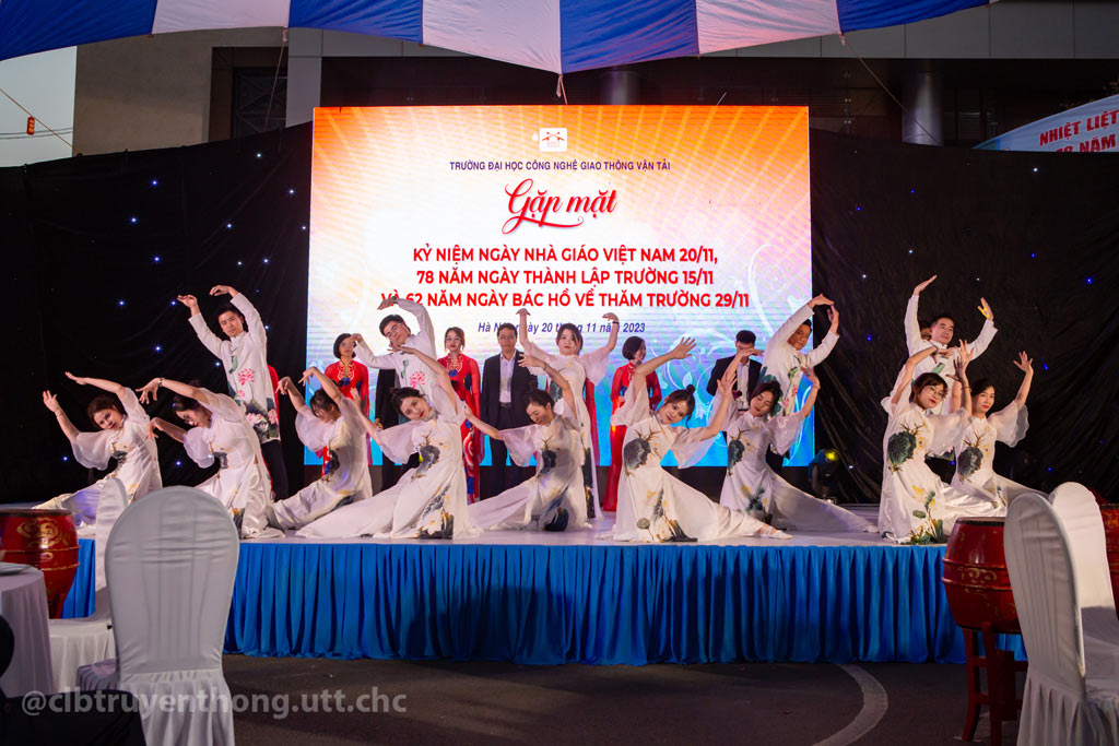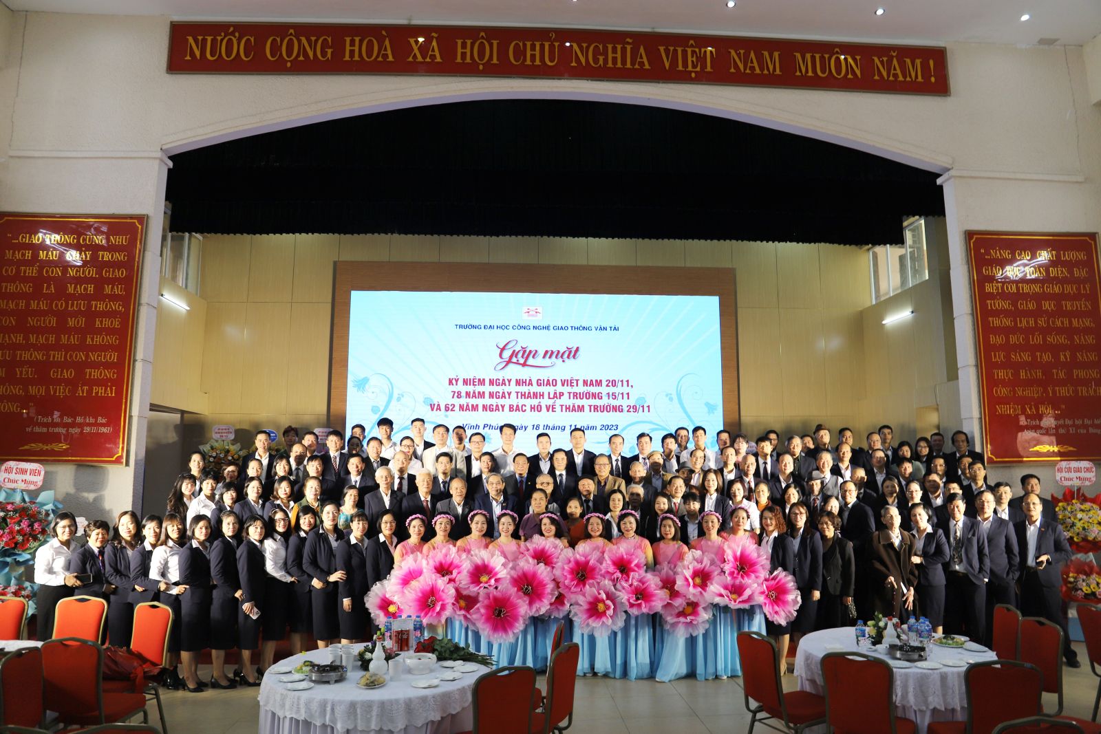 Trong không khí cả nước tri ân ngày Nhà giáo Việt Nam, ngày 20/11 Trường Đại học Công nghệ GTVT đã long trọng tổ chức chương trình gặp mặt kỷ niệm ngày Nhà giáo Việt Nam 20/11), 78 năm ngày thành lập Trường (15/11/1945-15/11/2023) và 62 năm ngày Bác Hồ về thăm Trường (29/11/1961- 29/11/2023). Đây là dịp để thầy và trò UTT cùng tri ân các thế hệ giáo chức đã và đang nỗ lực phấn đấu không ngừng cho sự phát triển chung của Nhà trường.