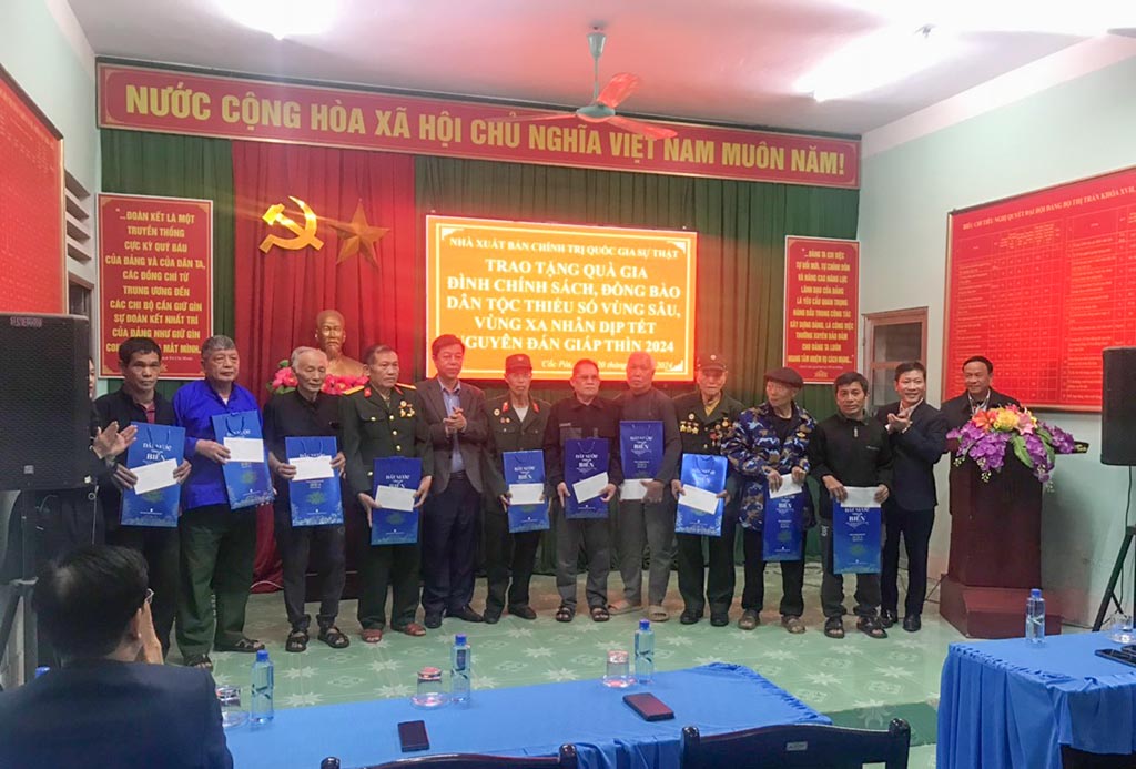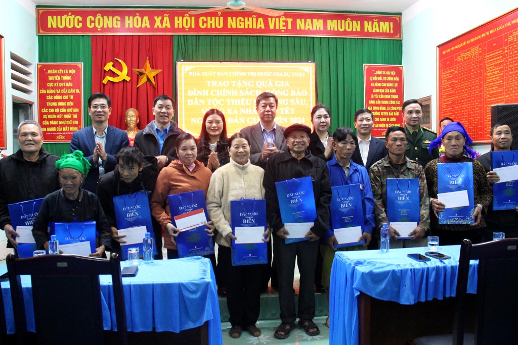 Tại Hà Giang, PGS.TS. Vũ Trọng Lâm, Giám đốc - Tổng Biên tập Nhà xuất bản Chính trị quốc gia Sự thật đã trao tặng cán bộ, chiến sĩ đồn biên phòng Xín Mần tủ sách gồm nhiều đầu sách lý luận, chính trị, pháp luật do Nhà xuất bản Chính trị quốc gia Sự thật ấn hành, trị giá 15 triệu đồng.
