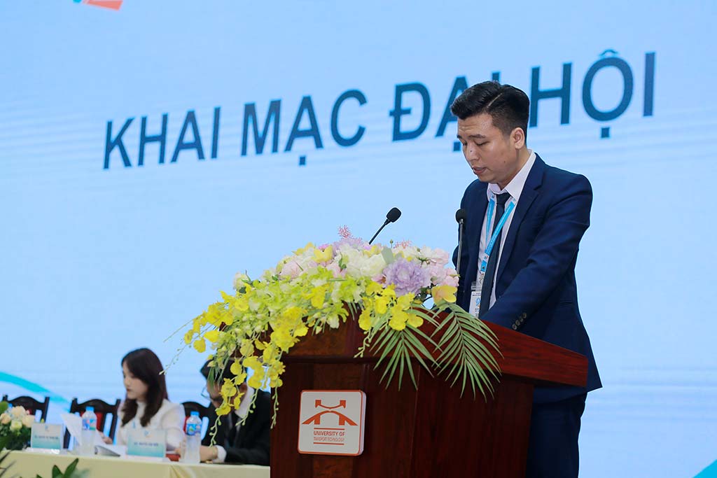 Đồng chí Phùng Công Dũng, Chủ tịch Hội sinh viên Trường Đại học Công nghệ GTVT khóa VII, nhiệm kỳ 2021-2023 đã phát biểu khai mạc và gửi lời cảm ơn sự quan tâm, chỉ đạo của lãnh đạo Trung ương Đoàn, Trung ương Hội, Thành Đoàn, Hội Sinh viên Việt Nam Thành phố Hà Nội, đặc biệt sự định hướng, quan tâm tạo điều kiện của Đảng uỷ, Hội đồng Trường, Ban Giám hiệu dành cho công tác Hội và phong trào sinh viên trong thời gian qua.