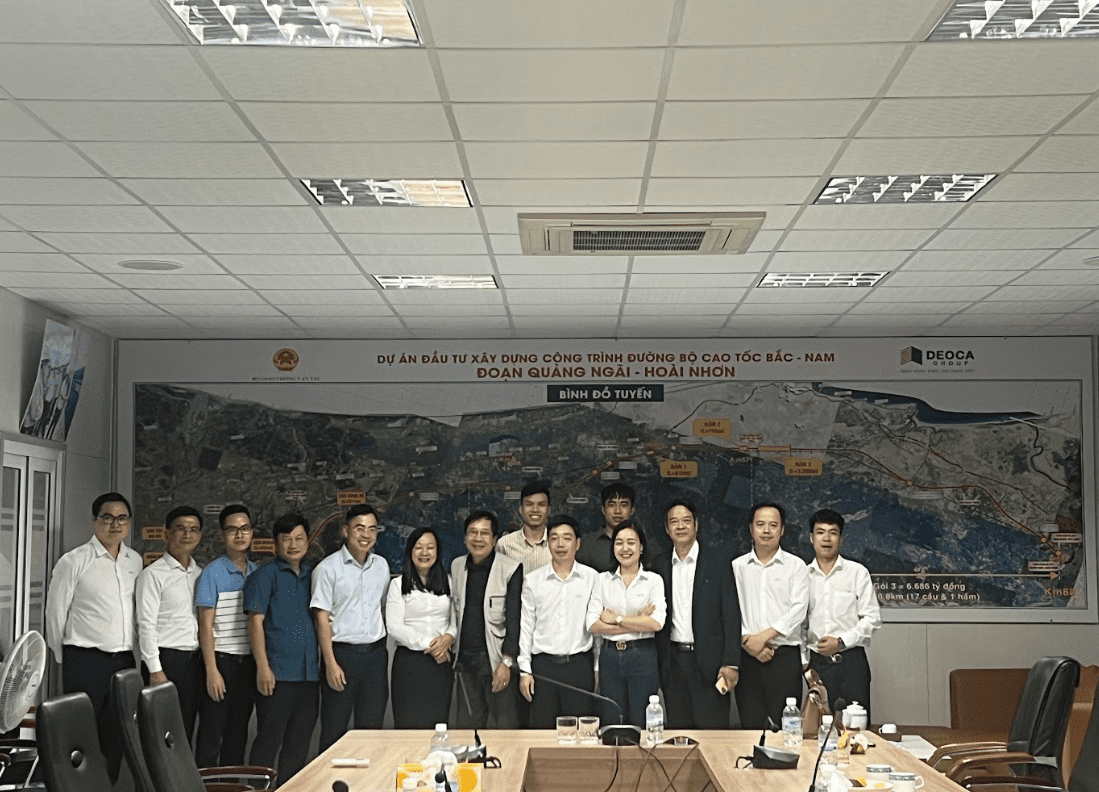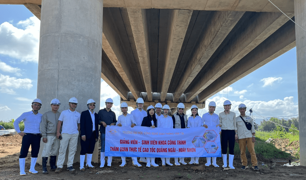 Nhằm tạo điều kiện cho cán bộ giảng viên và sinh viên nâng cao kiến thức thực tế, đồng thời có cơ hội giao lưu gặp gỡ với Tập đoàn Đèo Cả (DEOCA GROUP-DCG)- đơn vị đối tác của Nhà trường, vừa qua tập thể giảng viên và sinh viên Khoa Công trình đã có chuyến tham quan thực tế tại công trình đường bộ cao tốc Bắc – Nam, đoạn Quảng Ngãi – Hoài Nhơn, dài 88Km, bao gồm 6 nút giao liên thông, 78 cây cầu, 83 hầm chui và 3 hầm xuyên núi, với tổng giá trị xây lắp hơn 14.700 tỷ đồng.