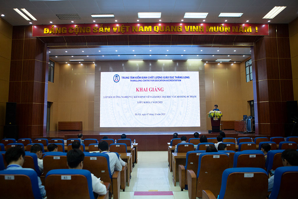 Sáng ngày 07/10, Trung tâm Kiểm định chất lượng giáo dục (KĐCLGD) Thăng Long phối hợp với Trường Đại học Công nghệ GTVT tổ chức thành công Lễ khai giảng lớp bồi dưỡng nghiệp vụ kiểm định viên giáo dục đại học và cao đẳng sư phạm khóa I, lớp 3.