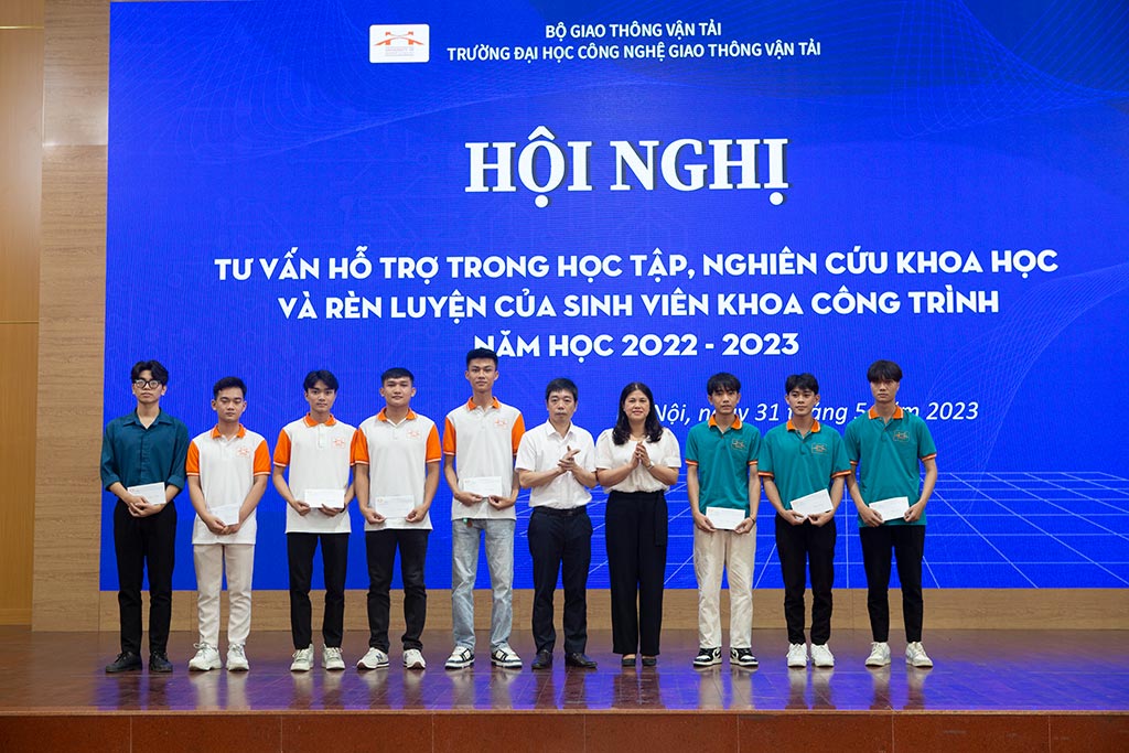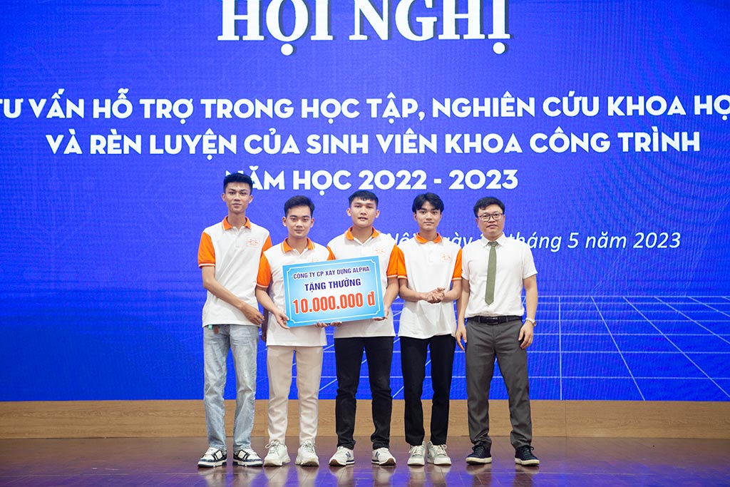 Để động viên, khích lệ và ghi nhận những đóng góp của sinh viên, lãnh đạo Khoa Công trình, các đơn vị doanh nghiệp khách mời đã trao thưởng cho các em sinh viên đoạt giải thi Olympic Cơ học toàn quốc, thi Sáng tạo - Sinh viên VLXD trong năm học 2022-2023.