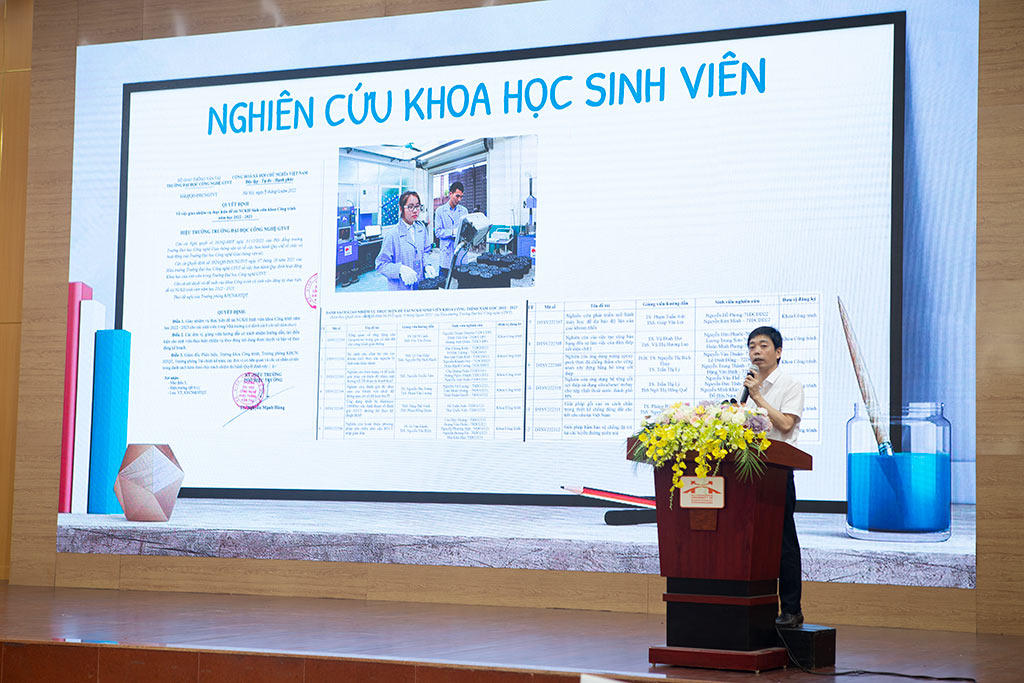 Tại chương trình, TS. Phùng Bá Thắng- Phó trưởng Khoa Công trình đã báo cáo hoạt động công tác sinh viên năm học 2022-2023 và kế hoạch năm học 2023-2024. Trong năm học 2022-2023, với sự cố gắng học hỏi, tìm tòi, sáng tạo, say mê nghiên cứu khoa học của các em sinh viên, với 12 đề tài nghiên cứu, dưới sự hướng dẫn của các thầy, cô giáo Khoa Công trình đã bước đầu đạt nhiều kết quả đáng ghi nhận. Đặc biệt, khi tham gia các cuộc thi lớn như Olympic cơ học toàn quốc, sáng tạo sinh viên- vật liệu xây dựng, các em sinh viên trong Khoa đã xuất sắc vượt qua nhiều trường trong khối Kỹ thuật để dành các giải cao, đó là những minh chứng cho sự nỗ lực của các em. Đồng thời, Khoa đã tổ chức thành công các chương trình tọa đàm đối thoại trực tiếp như sinh viên nghiên cứu khoa học, tọa đàm doanh nghiệp, tổ chức các chuyến đi tham quan thực tế... nhằm giúp các em có cái nhìn tổng quan hơn về chuyên ngành đang theo học, bổ trợ các kiến thức trong hoạt động học tập, thực tập và định hướng trong lựa chọn việc làm sau khi tốt nghiệp... Bên cạnh đó, các hoạt động về thể thao văn nghệ của các câu lạc bộ, hội, nhóm trong Khoa cũng thường xuyên được diễn ra nhằm tăng cường trao đổi, tạo môi trường kết nối các sinh viên trong Khoa, tạo sự thoải mái sau những giờ học trên giảng đường...