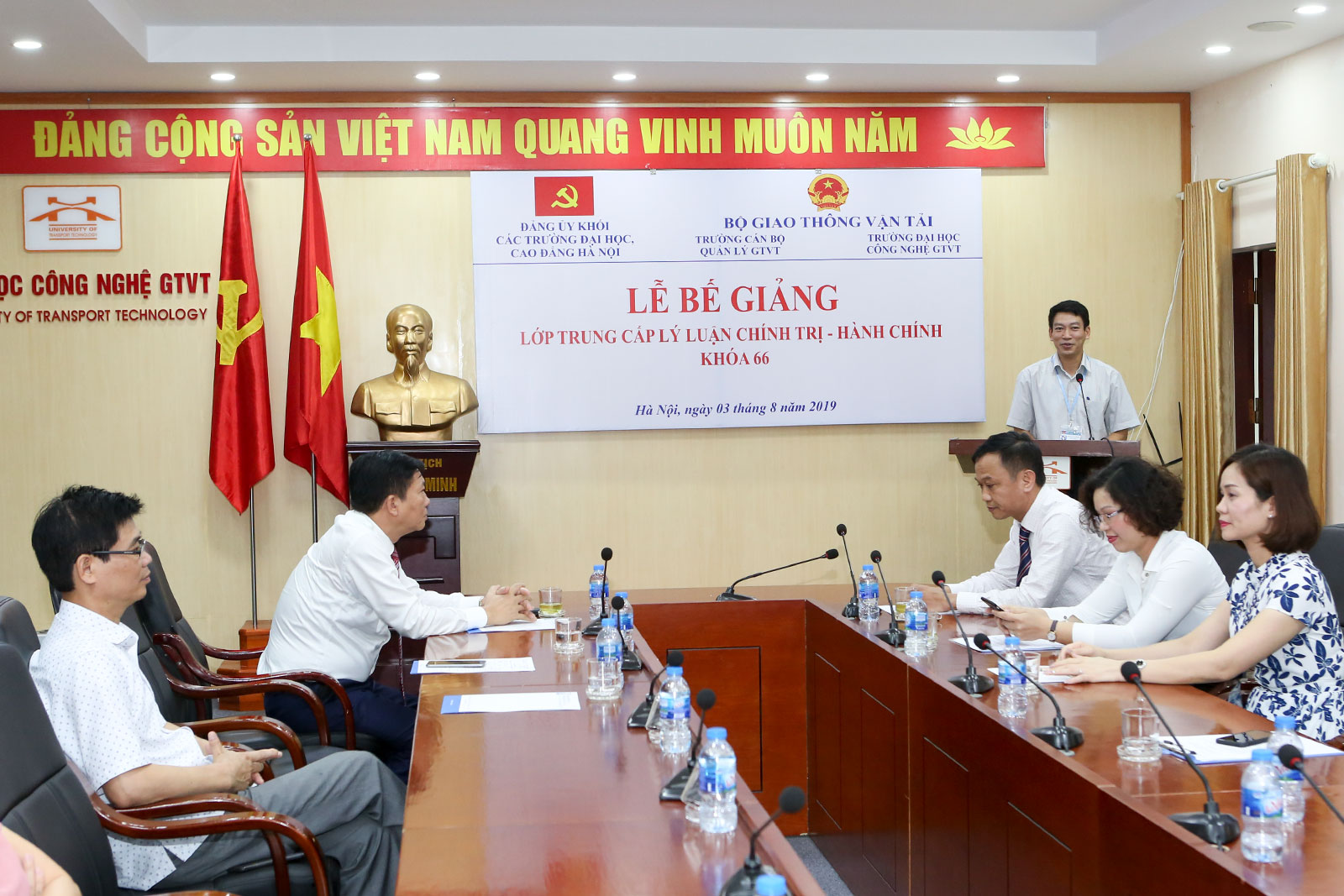 Ngày 03/8/2019, Trường Đại học Công nghệ Giao thông vận tải phối hợp với Trường Cán bộ Quản lý GTVT long trọng tổ chức Lễ bế giảng lớp Trung cấp Lý luận chính trị - Hành chính khóa 66.