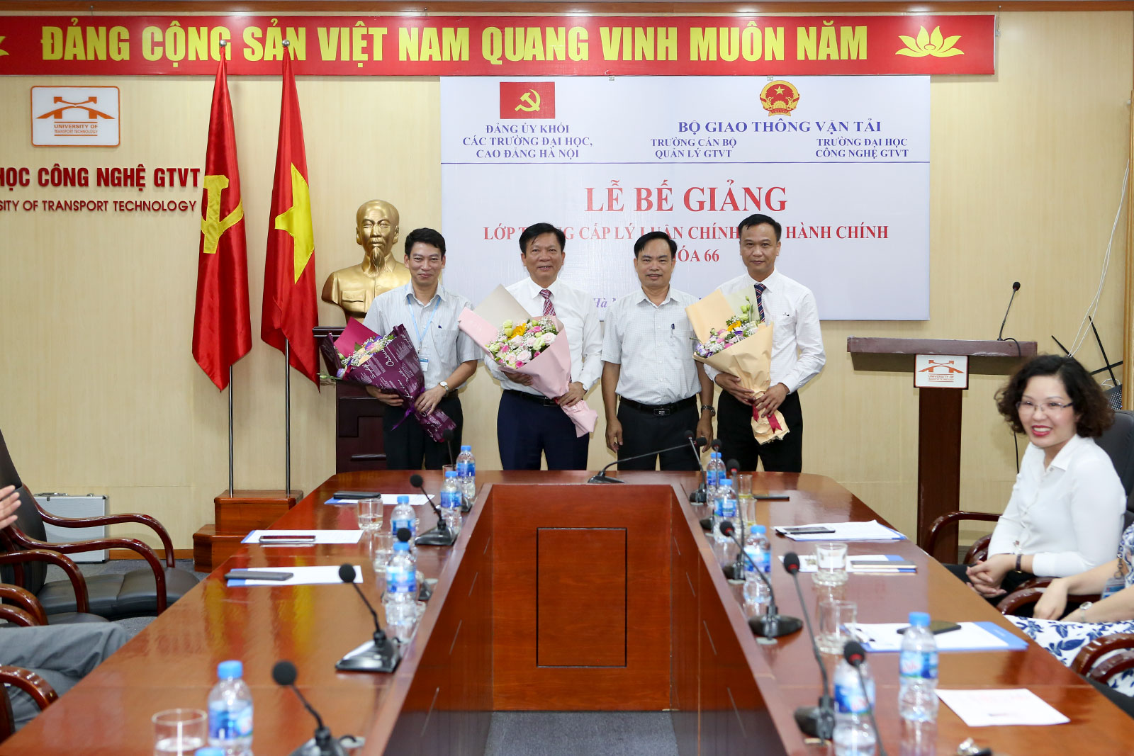 Dự Lễ bế giảng, về phía Đảng bộ Khối các trường Đại học, Cao đẳng Hà Nội có ông Vũ Tuấn Dũng - Thành ủy viên, Bí thư Đảng ủy; bà Trương Thị Dung - Trưởng Ban tổ chức; về phía Trường Cán bộ quản lý GTVT có ông Ngô Anh Tuấn - Bí thư Đảng ủy, Hiệu trưởng; bà Khổng Nguyệt Anh - Trưởng phòng Đào tạo - QLKH; về phía Trường Đại học Công nghệ GTVT có PGS.TS. Đào Văn Đông - Bí thư Đảng ủy, Hiệu trưởng; TS. Nguyễn Mạnh Hùng - Chủ tịch Hội đồng Trường; TS. Dương Thị Ngọc Thu - Trưởng phòng TCCB; ThS. Dương Văn Đoan - Phó trưởng Khoa Đào tạo Tại chức; cùng các giảng viên tham gia giảng dạy khóa học và 63 học viên đã hoàn thành khóa học và đủ điều kiện nhận bằng tốt nghiệp.