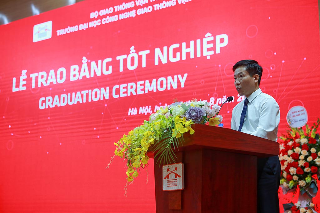 Mở đầu Lễ trao bằng tốt nghiệp, TS. Ngô Quốc Trinh – Trường Phòng Đào tạo đã công bố quyết định công nhận tốt nghiệp và quyết định khen thưởng cho các sinh viên. Theo đó, có 638 sinh viên đại học chính quy được công nhận tốt nghiệp đợt tháng 8 năm 2023, bao gồm các ngành: CNKT giao thông, CNKT cơ khí; CNKT môi trường, CNKT Ô tô, CNKT cơ điện tử, Kinh tế xây dựng, Kế toán, Thương mại điện tử, Khai thác vận tải, Tài chính ngân hàng, Quản trị kinh doanh, Logistics và Quản lý chuỗi cung ứng, Công nghệ thông tin, Hệ thống thông tin, Truyền thông và mạng máy tính, CNKT điện tử viễn thông ở các khoá 64, 65, 66, 67, 68, 69 và 70. Đây là đợt trao bằng tốt nghiệp lần thứ 4 trong năm 2023.
