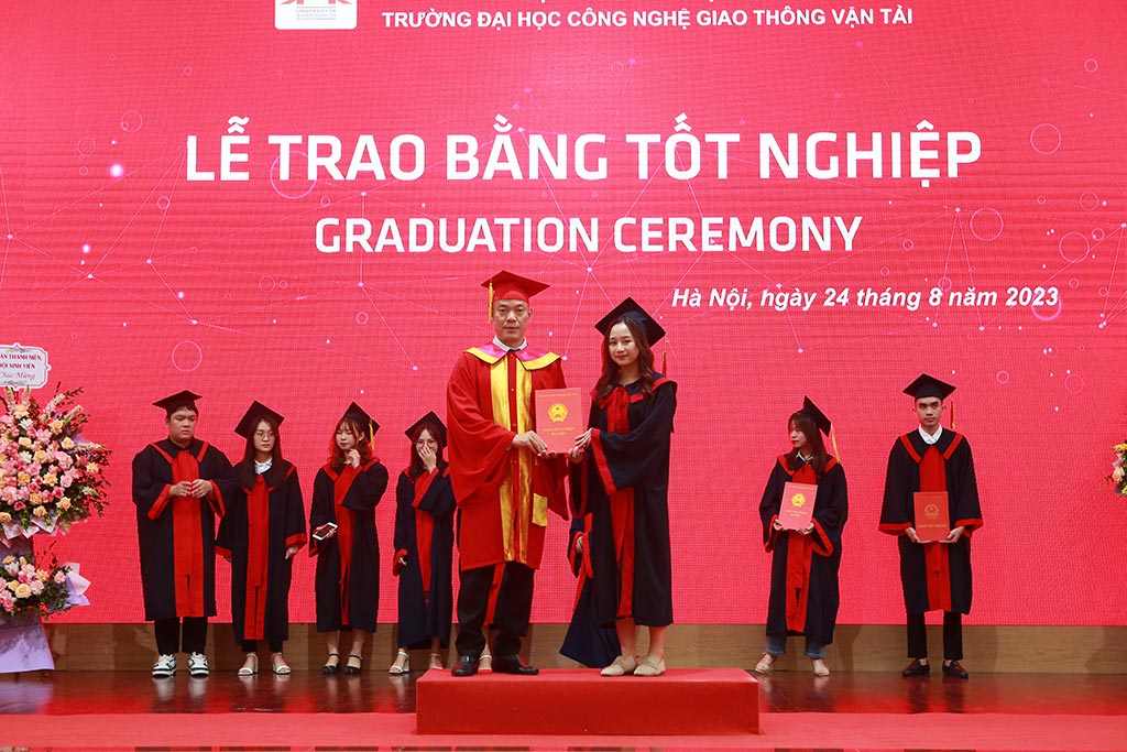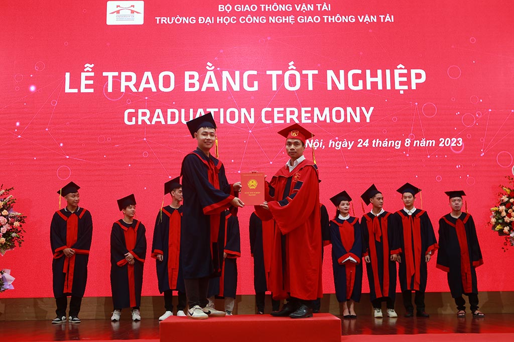 Ngày 24/8, Trường Đại học Công nghệ GTVT đã long trọng tổ chức Lễ trao bằng tốt nghiệp đợt tháng 8 năm 2023 cho các tân cử nhân và tân kỹ sư tại Hội trường lớn cơ sở đào tạo Hà Nội.