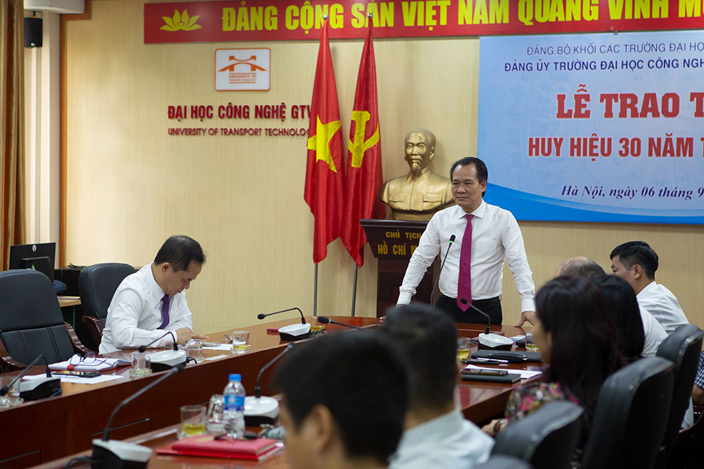 Tại buổi Lễ, thay mặt Đảng ủy Khối, đồng chí Nguyễn Thanh Sơn – Thành uỷ viên, Bí thư Đảng ủy Khối các trường đại học, cao đẳng Hà Nội đã trân trọng trao tặng Huy hiệu 30 năm tuổi Đảng cho đồng chí Trần Thanh An và phát biểu chúc mừng khi đồng chí vinh dự được nhận phần thưởng cao quý của Đảng. Đồng thời nhấn mạnh việc trao tặng Huy hiệu Đảng là sự ghi nhận công lao, đóng góp của đảng viên với tổ chức Đảng, là biểu tượng của sự phấn đấu, rèn luyện, cống hiến và trưởng thành của mỗi Đảng viên.