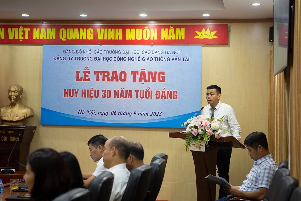 Ngày 06/9/2023, Đảng uỷ Trường Đại học Công nghệ GTVT đã long trọng tổ chức “Lễ trao tặng Huy hiệu 30 năm tuổi Đảng" cho đồng chí Trần Thanh An sinh hoạt Đảng tại chi bộ Đào tạo.
