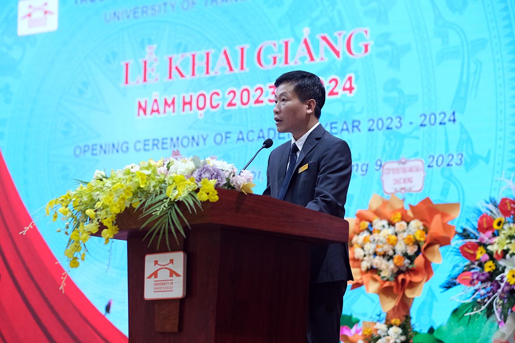 Phát biểu tại Lễ khai giảng, PGS.TS Nguyễn Hoàng Long cho biết, nhìn lại chặng đường của năm học 2022 - 2023, thầy và trò Trường Đại học Công nghệ GTVT rất tự hào vì đã đạt được nhiều kết quả rất đáng khích lệ trên tất cả các lĩnh vực, tạo lập nền tảng vững chắc cho giai đoạn phát triển mới tiếp theo của Nhà trường. Theo đó, các chỉ tiêu đề ra đầu năm học cơ bản hoàn thành, nhiều chỉ tiêu hoàn thành xuất sắc có tính đột phá như: chất lượng tuyển sinh, tăng quy mô đào tạo, giảm tỷ lệ sinh viên thôi học, bỏ học, tốt nghiệp đúng hạn; kiểm định thành công 4 chương trình đào tạo (CTĐT); mở mới 03 CTĐT trình độ đại học, 01 CTĐT liên kết quốc tế với Hàn Quốc; công tác công bố khoa học quốc tế tiếp tục được duy trì phát triển, Tạp chí Khoa học và Công nghệ Giao thông được Hội đồng chức danh GS nhà nước ngành Cơ học tính điểm...