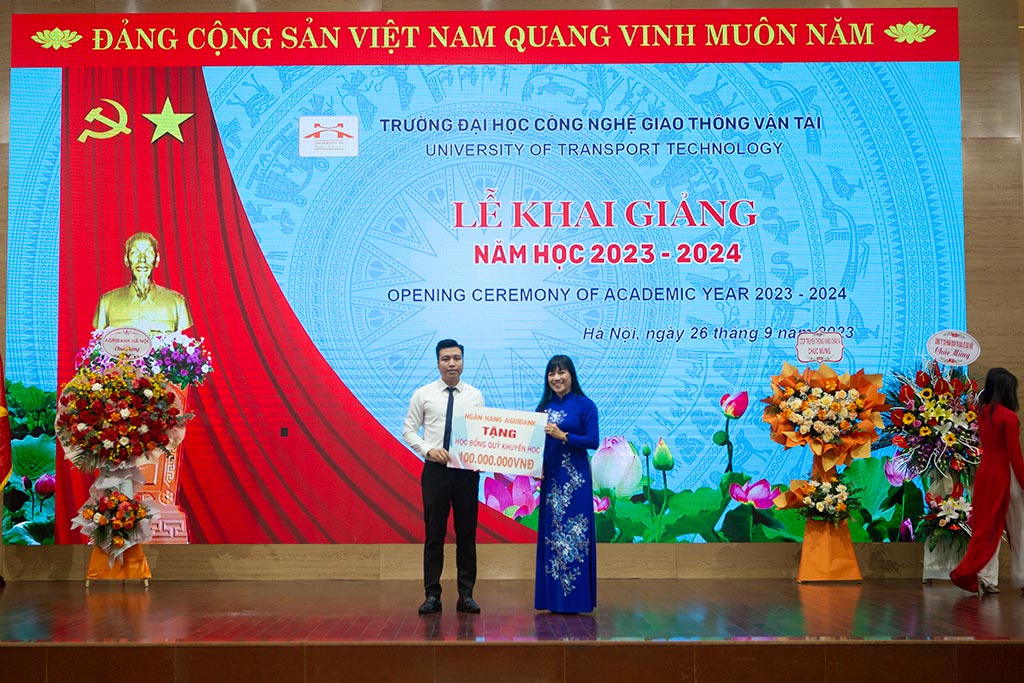 Cũng tại buổi Lễ, đại diện lãnh đạo Ngân hàng Agribank trao tặng học bổng Quỹ khuyến học Nhà trường 100 triệu đồng.