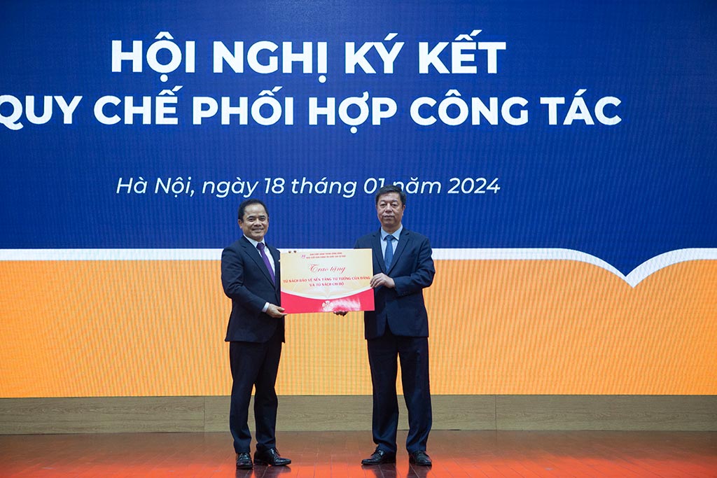 Một là, về công tác xuất bản: Hai cơ quan phối hợp tổ chức biên soạn, biên tập, xuất bản phiên bản giấy và điện tử sách, giáo trình, kỷ yếu hội thảo khoa học, tài liệu phục vụ công tác giảng dạy, nghiên cứu, học tập của cán bộ, giảng viên, sinh viên, học viên; các công trình, đề tài khoa học các cấp, các ngành, các địa phương, cơ quan, đơn vị do Trường Đại học và cán bộ, giảng viên Trường Đại học chủ trì nghiên cứu.