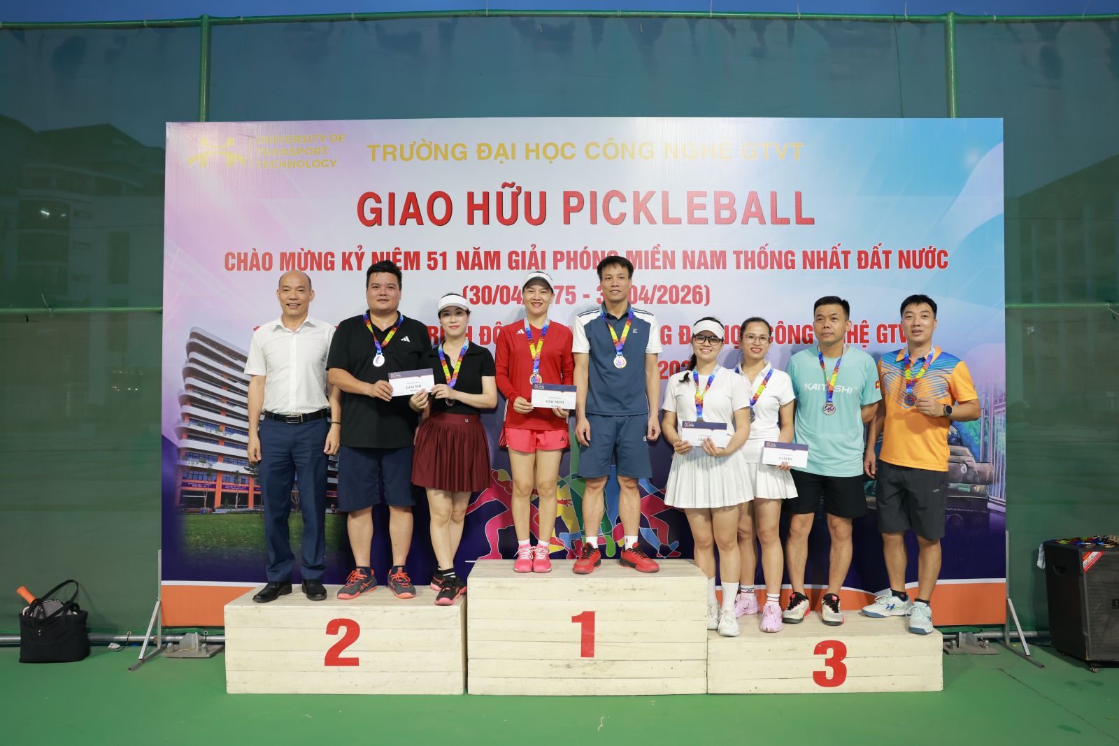 Chiều 23/4/2026, Trường Đại học Công nghệ GTVT đã tổ chức các nội dung thi đấu chính thức Giải Pickleball cấp Trường với sự tham gia của 38 vận động viên đến từ 3 cơ sở Hà Nội, Phú Thọ và Thái Nguyên.