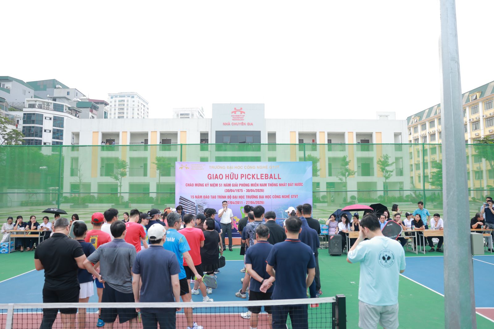Hòa trong không khí thi đua sôi nổi hướng tới kỷ niệm 51 năm Ngày Giải phóng miền Nam, thống nhất đất nước (30/4/1975 - 30/4/2026), 140 năm Ngày Quốc tế Lao động (01/5/1886 - 01/5/2026) và 15 năm Nhà trường đào tạo trình độ đại học (27/4/2011 - 27/4/2026), chiều ngày 20/4, tại Trường Đại học Công nghệ GTVT đã diễn ra khai mạc Giải Pickleball năm 2026.