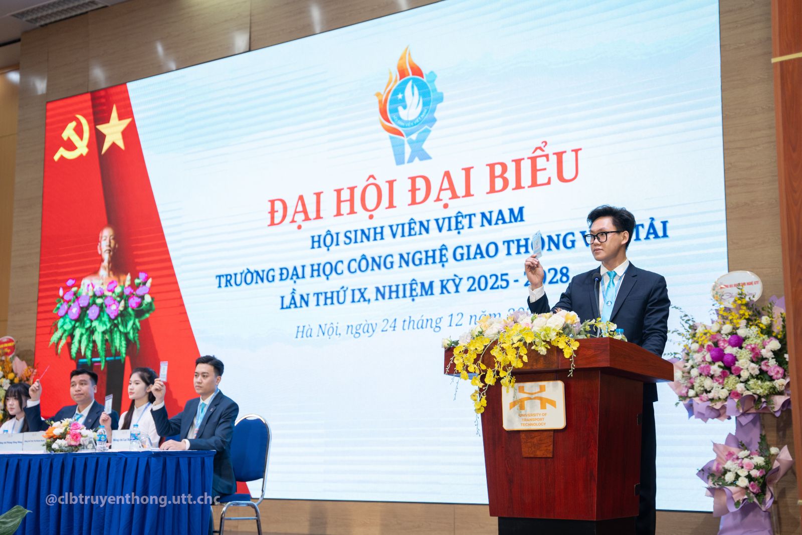 Ngày 24/12/2025, tại Hội trường lớn cơ sở Hà Nội, Đại hội đại biểu Hội Sinh viên Việt Nam Trường Đại học Công nghệ GTVT lần thứ IX diễn ra trang trọng, với sự tham dự của 138 đại biểu chính thức đại diện cho trí tuệ, bản lĩnh và khát vọng của hơn 20.000 hội viên, sinh viên toàn trường.