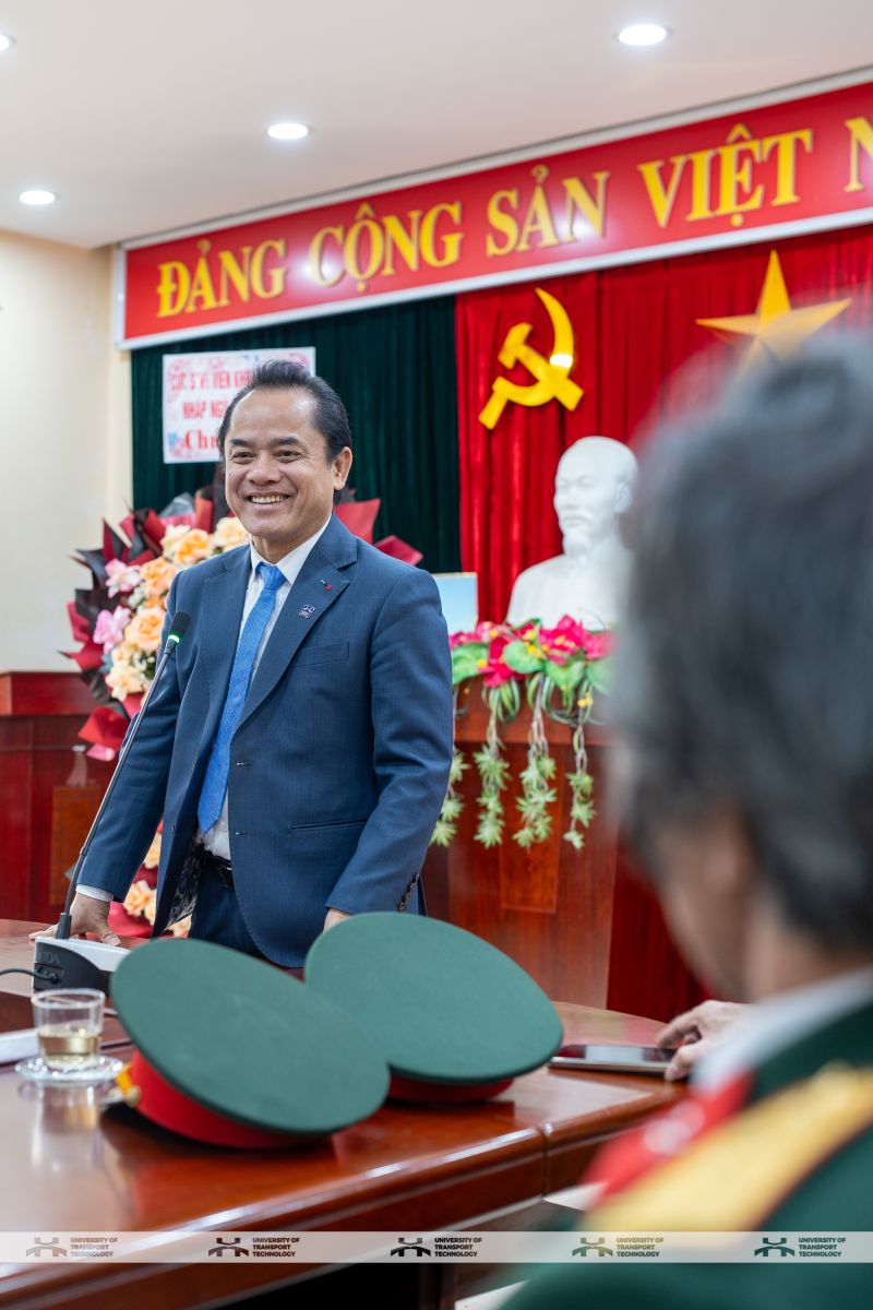 Tham dự buổi gặp mặt có PGS.TS. Vũ Ngọc Khiêm – Bí thư Đảng uỷ, Chủ tịch Hội đồng trường; TS. Trần Thanh An – Phó Hiệu trưởng Nhà trường; TS. Nguyễn Mạnh Hùng – Nguyên Phó Hiệu trưởng, Chủ tịch Hội CCB UTT, lãnh đạo các đơn vị cùng đông đảo cựu chiến binh là cựu học sinh – sinh viên của Trường.