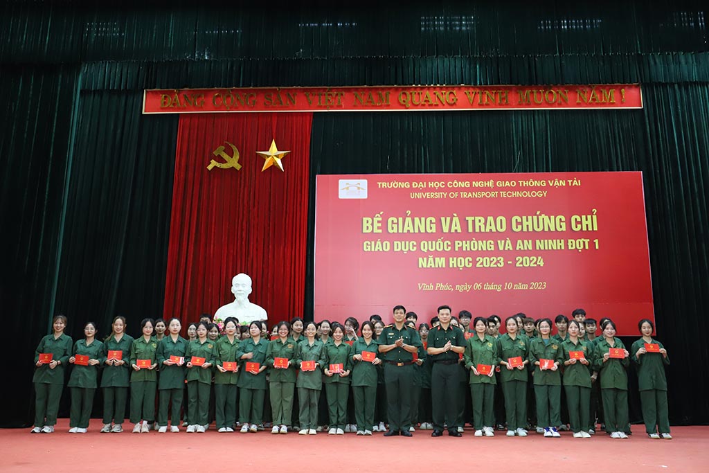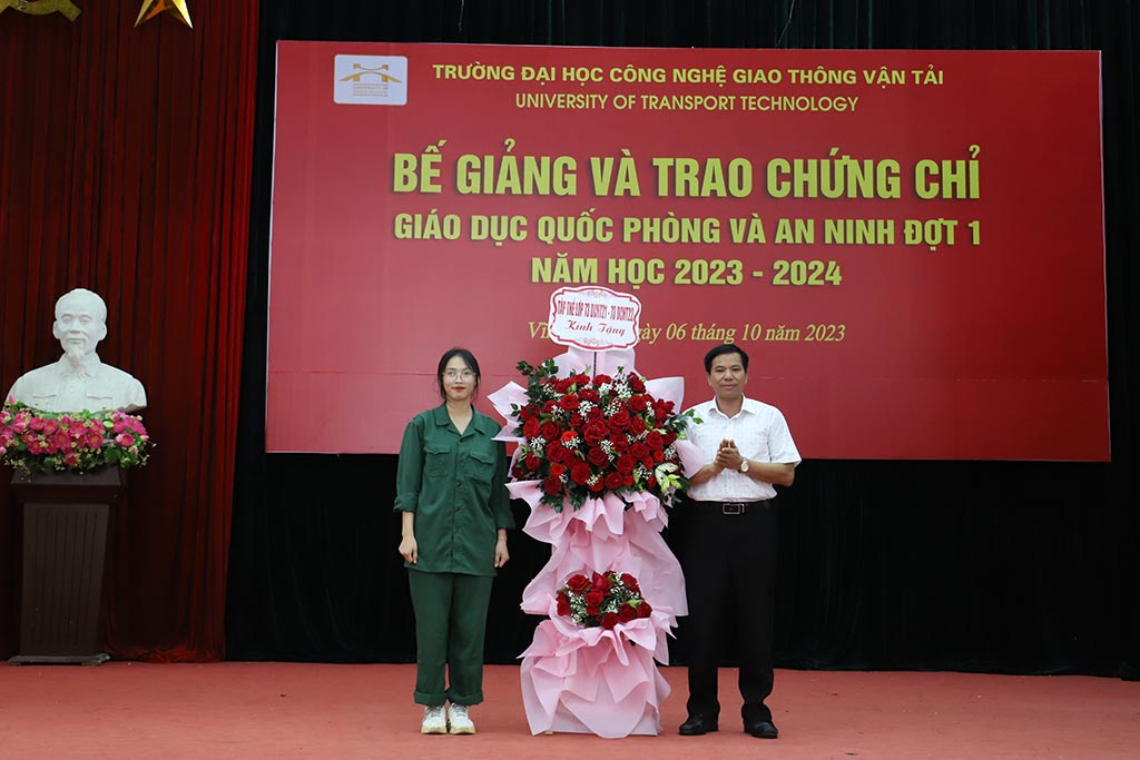 Theo báo cáo tổng kết học kỳ QPAN, GDTC đợt 1, trong kỳ học vừa qua, có nhiều sinh viên đã chăm chỉ rèn luyện, hoàn thành xuất sắc các nội dung môn học. Để ghi nhận thành tích rèn luyện của sinh viên, Hiệu trưởng Trường ĐH Công nghệ GTVT đã có quyết định khen thưởng cho các sinh viên có thành tích tốt trong đợt học tập. Tại chương trình, TS. Trần Hà Thanh- Phó hiệu trưởng Nhà trường đã trao Giấy khen cho những sinh viên đạt thành tích xuất sắc trong kỳ học QPAN&GDTC đợt 1 năm học 2023-2024.