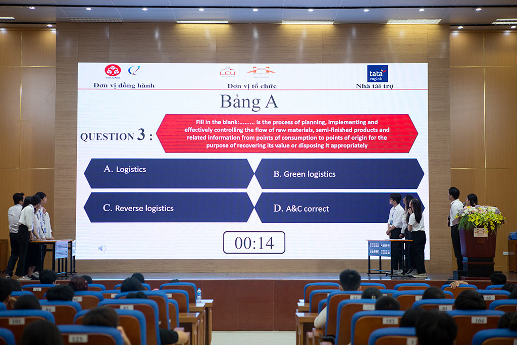 Phần 1: Thi phản ứng nhanh: Mỗi đội thi sẽ làm bài thi trên hệ thống trực tuyến, bài thi gồm 10 câu hỏi trắc nghiệm bằng tiếng Việt và tiếng Anh để đánh giá sự hiểu biết và khả năng vận dụng kiến thức chuyên ngành về lĩnh vực Logistics, quản trị chuỗi cung ứng trên nền tảng thi trắc nghiệm.
