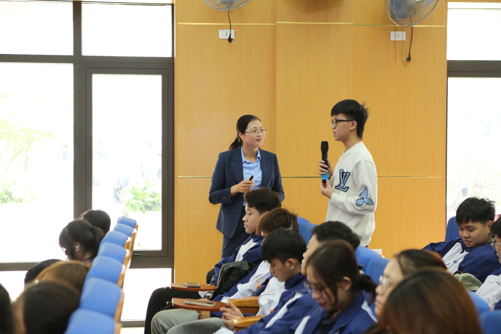 Sinh viên đặt câu hỏi thảo luận tại buổi tọa đàm