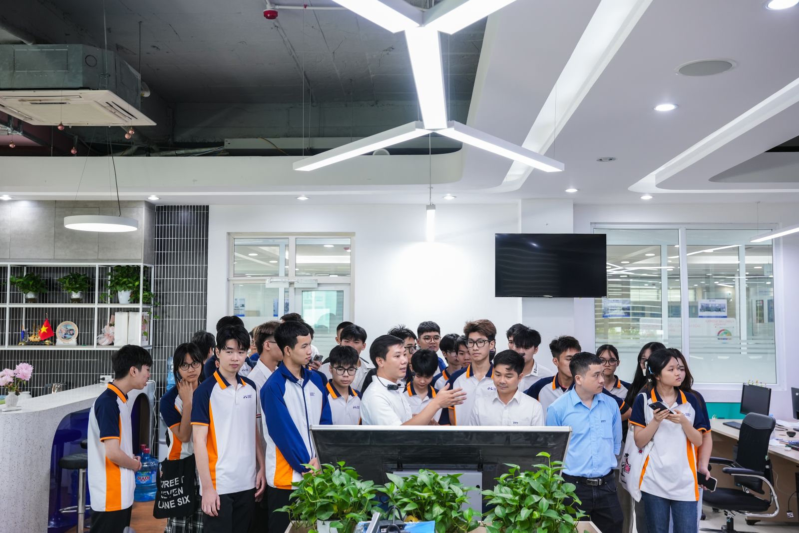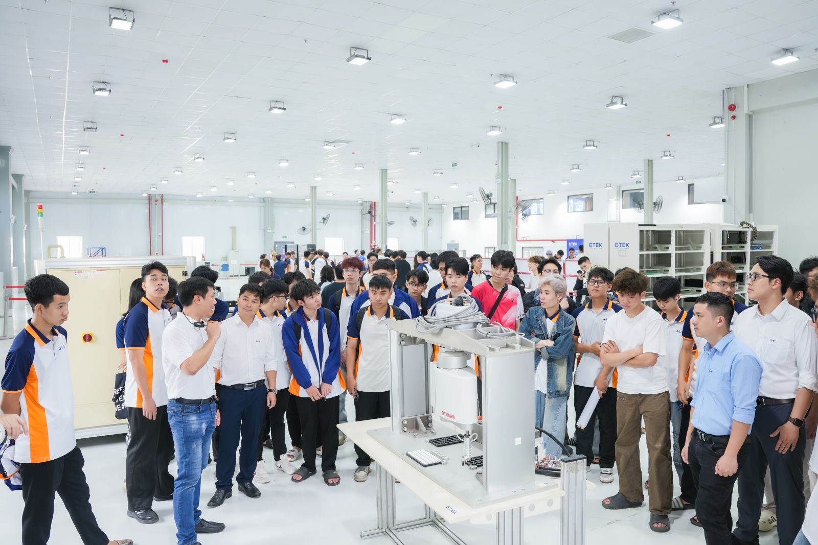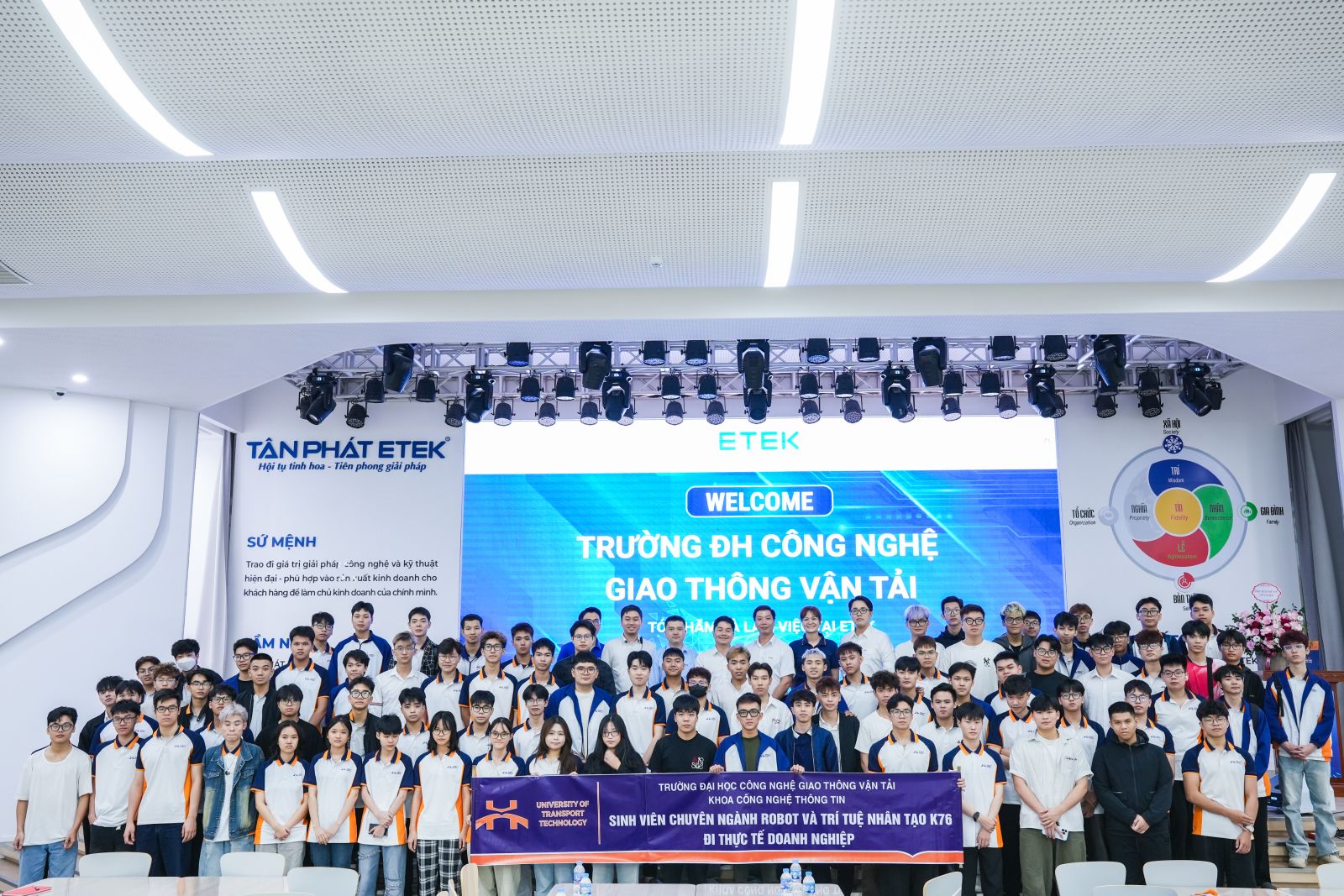 Tiếp đó, tại Công ty Cổ phần Giải pháp Tự động hóa ETEK, sinh viên được giới thiệu tổng quan về cơ cấu tổ chức, mô hình hoạt động và quy trình triển khai các dự án trong lĩnh vực robot và trí tuệ nhân tạo. Thông qua việc tiếp cận các dự án thực tế trong và ngoài nước, sinh viên có điều kiện hiểu rõ hơn về xu hướng phát triển của ngành, cũng như các ứng dụng công nghệ trong sản xuất và đời sống.