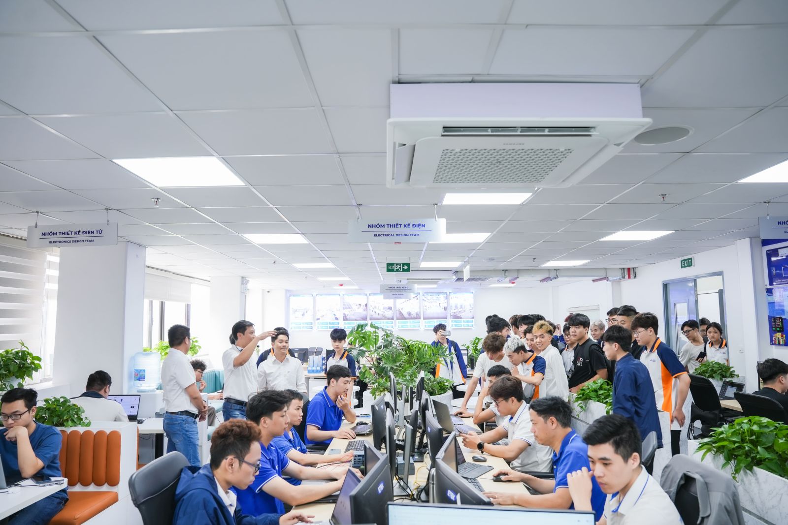 Tại Công ty Cổ phần Ứng dụng Công nghệ & CNC Việt Nam, sinh viên được trực tiếp tham quan và tìm hiểu quy trình sản xuất, từ khâu thiết kế kỹ thuật, gia công, lắp ráp đến vận hành và kiểm tra sản phẩm trước khi bàn giao cho khách hàng. Bên cạnh đó, các em còn có cơ hội trao đổi, lắng nghe chia sẻ từ các cựu sinh viên K73 cùng chuyên ngành hiện đang làm việc tại doanh nghiệp. Những thông tin thực tế này đã giúp sinh viên có cái nhìn cụ thể hơn về môi trường làm việc, yêu cầu nghề nghiệp cũng như lộ trình phát triển trong lĩnh vực cơ điện tử.