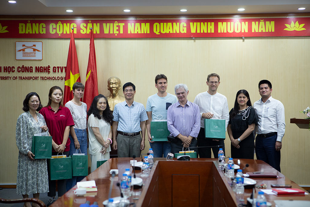 Đại diện Lãnh đạo Trường Đại học Công nghệ GTVT chụp hình lưu niệm với đối tác
