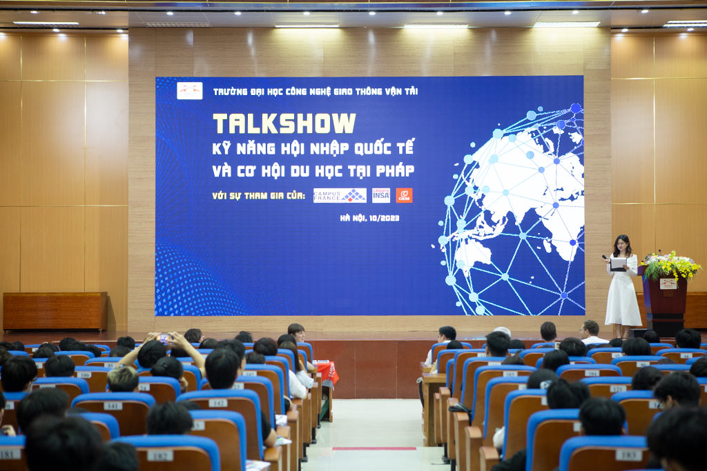 Chiều ngày 16/10, tại cơ sở đào tạo Hà Nội đã diễn ra Talkshow "Kỹ năng hội nhập quốc tế và cơ hội du học tại Pháp" với mong muốn giúp sinh viên UTT có những nhận định đúng đắn về cơ hội của quá trình hội nhập quốc tế, đồng thời trang bị những kỹ năng cần thiết giúp các bạn sinh viên thêm tự tin trong môi trường việc làm sau này.