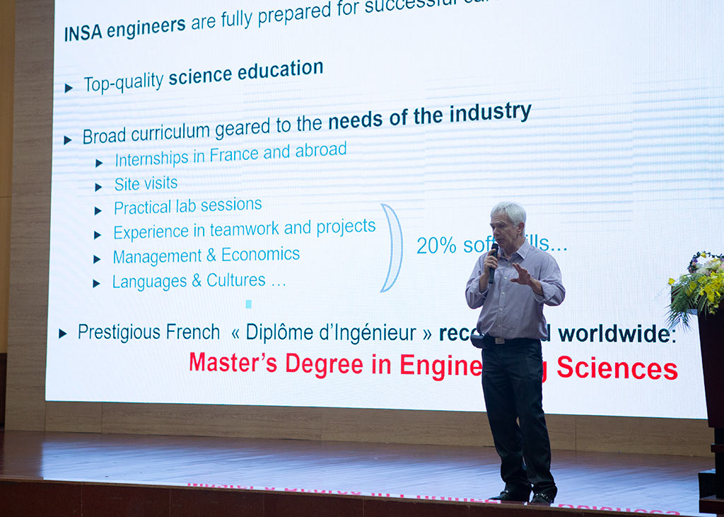 Cùng với đó là sự chia sẻ rất tâm huyết và cuốn hút của các vị khách mời đến từ Viện Khoa học ứng dụng Quốc gia Pháp (INSA) đã giúp sinh viên có cái nhìn tổng quan về hệ thống các Trường Kỹ sư INSA thuộc Viện khoa học Ứng dụng Quốc gia Pháp.