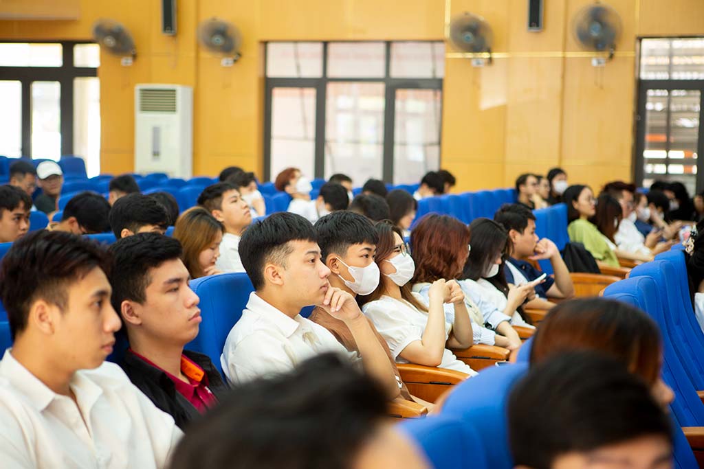 Sinh viên tham gia tọa đàm chăm chú lắng nghe chia sẻ từ diễn giả.