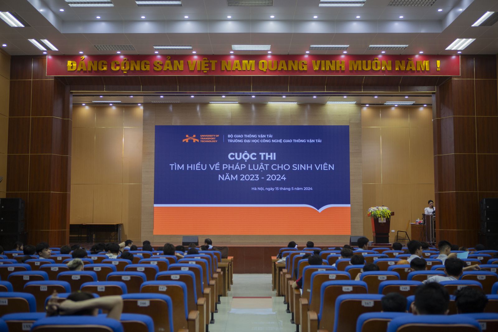 Sáng ngày 15/5, tại Trường Đại học Công nghệ GTVT đã diễn ra cuộc thi tìm hiểu pháp luật năm học 2023-2024 dành cho sinh viên đang học tại cơ sở đào tạo Hà Nội nhằm góp phần nâng cao nhận thức và ý thức chấp hành pháp luật của sinh viên, tạo diễn đàn để sinh viên tìm hiểu, giao lưu học hỏi, chia sẻ kiến thức, kinh nghiệm, phương thức thực hiện phổ biến, giáo dục pháp luật.