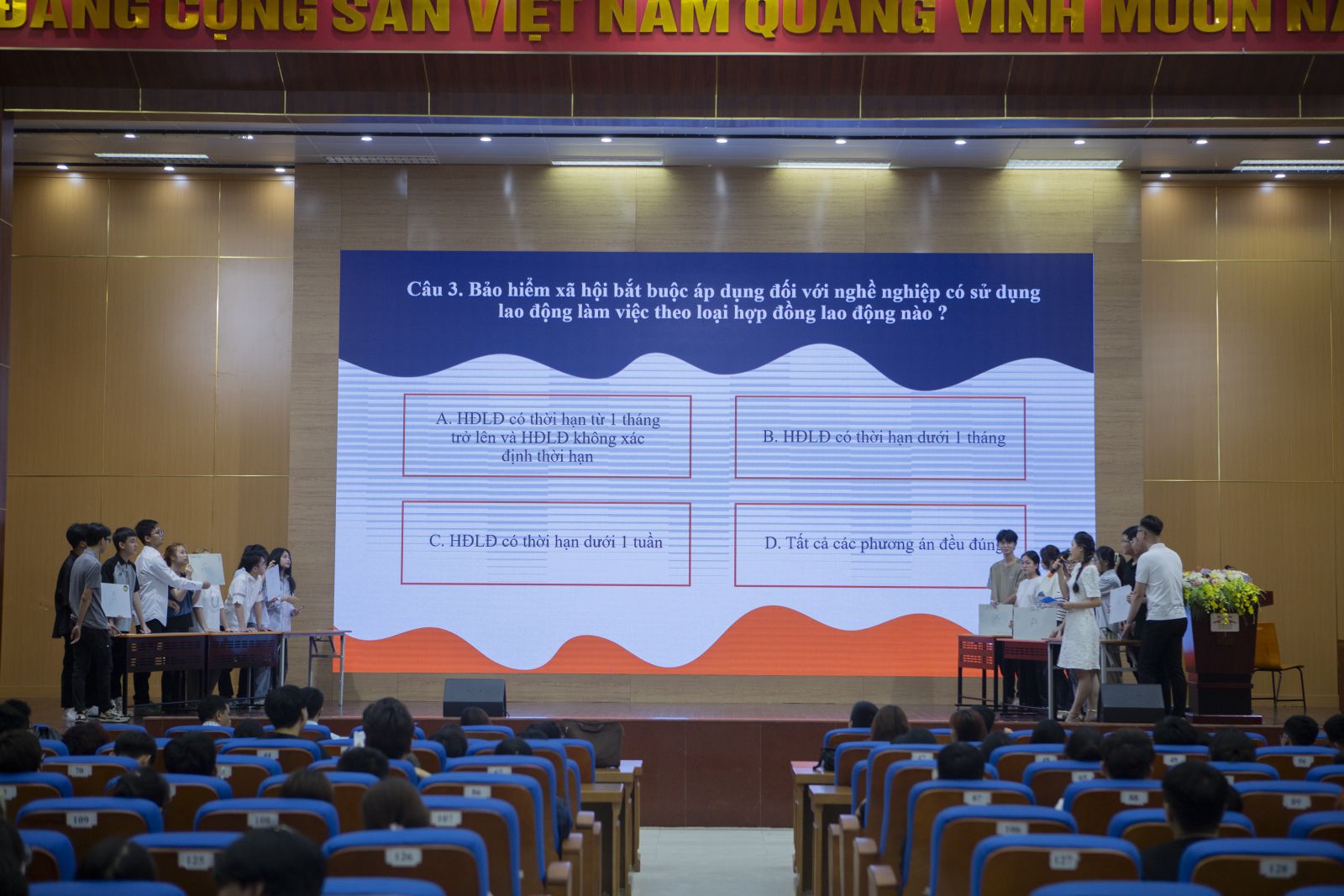 Các đội thi trổ tài hiểu biết về kiến thức pháp luật tại vòng thi trắc nghiệm