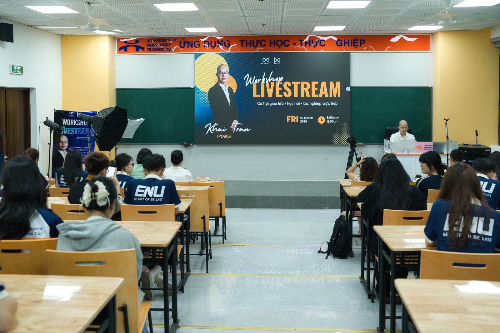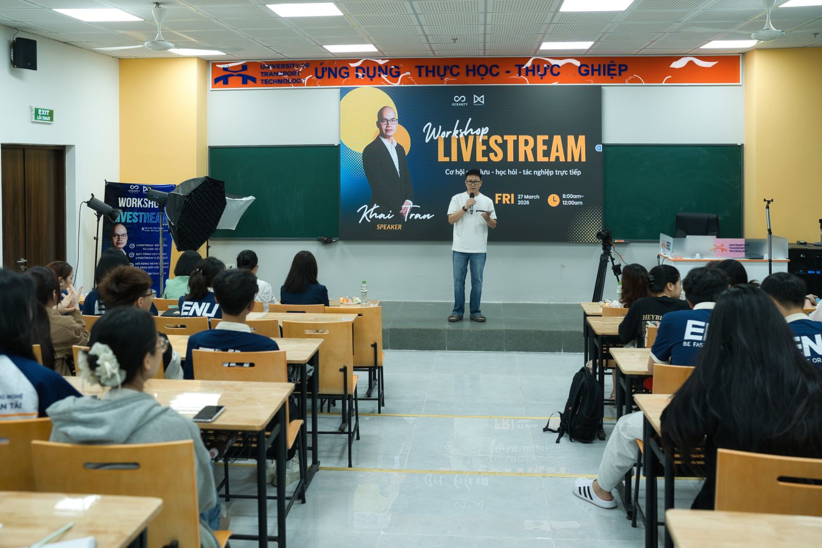Ngày 27/3, Bộ môn Thương mại điện tử - Khoa Quản trị, Trường Đại học Công nghệ GTVT phối hợp với Công ty TNHH Oceanity tổ chức workshop với chủ đề “Livestream trong Thương mại điện tử”, thu hút đông đảo sinh viên tham gia.
