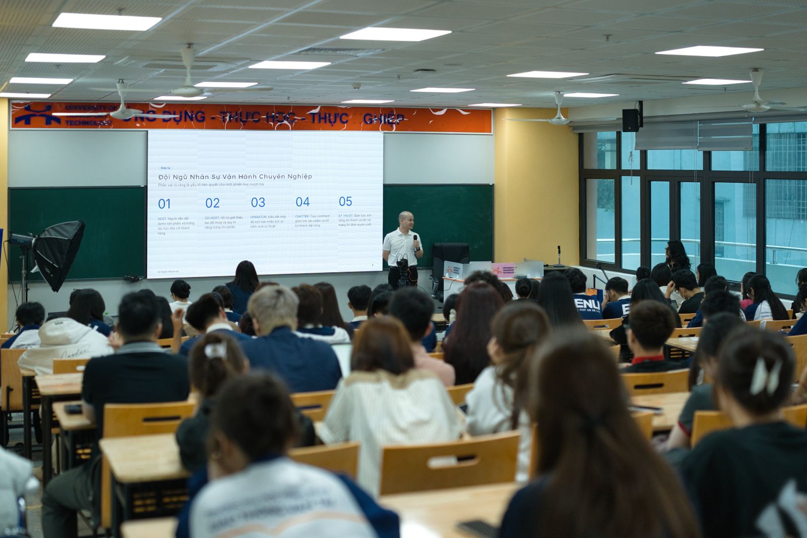 Chương trình được tổ chức nhằm trang bị kiến thức và kỹ năng thực tiễn về livestream - một trong những xu hướng nổi bật trong lĩnh vực thương mại điện tử hiện nay. Thông qua workshop, sinh viên không chỉ được tìm hiểu cách xây dựng một buổi livestream hiệu quả, thu hút người xem mà còn có cơ hội trực tiếp thực hành trong môi trường mô phỏng thực tế.