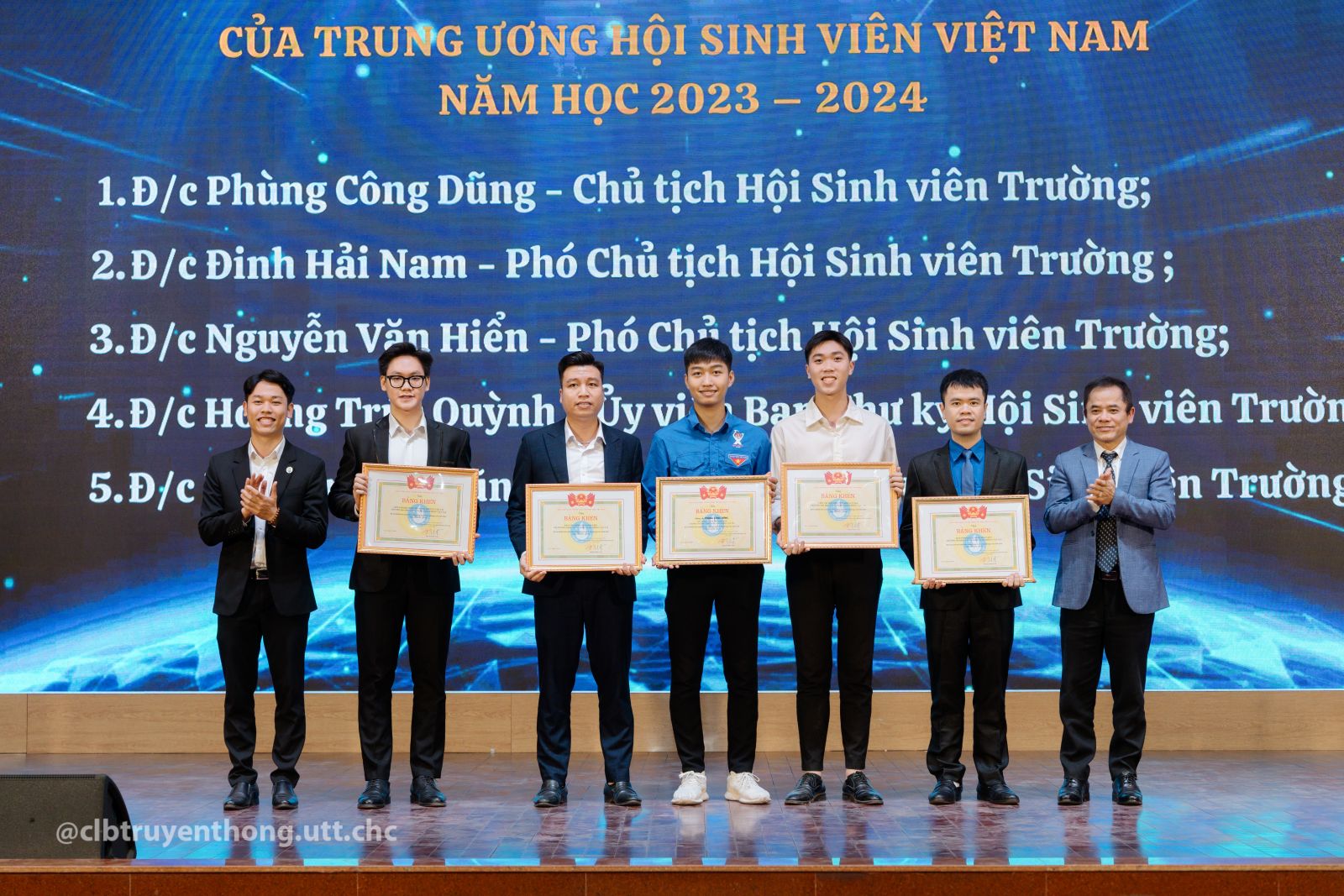 Tại buổi Lễ, đồng chí Tưởng Văn Thuấn - Ủy viên Ban Chấp hành Trung ương Hội Sinh viên Việt Nam, Phó Chủ tịch Hội Sinh viên TP. Hà Nội, Chủ tịch Hội Sinh viên Đại học Quốc gia Hà Nội cùng đại diện lãnh đạo Nhà trường đã trao kỉ niệm chương và chứng nhận cho các bạn sinh viên đạt danh hiệu "Sinh viên 5 tốt".
